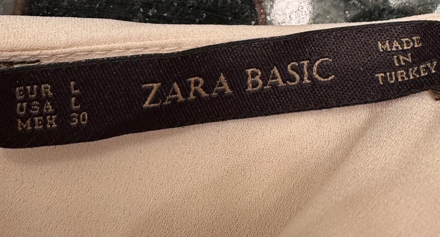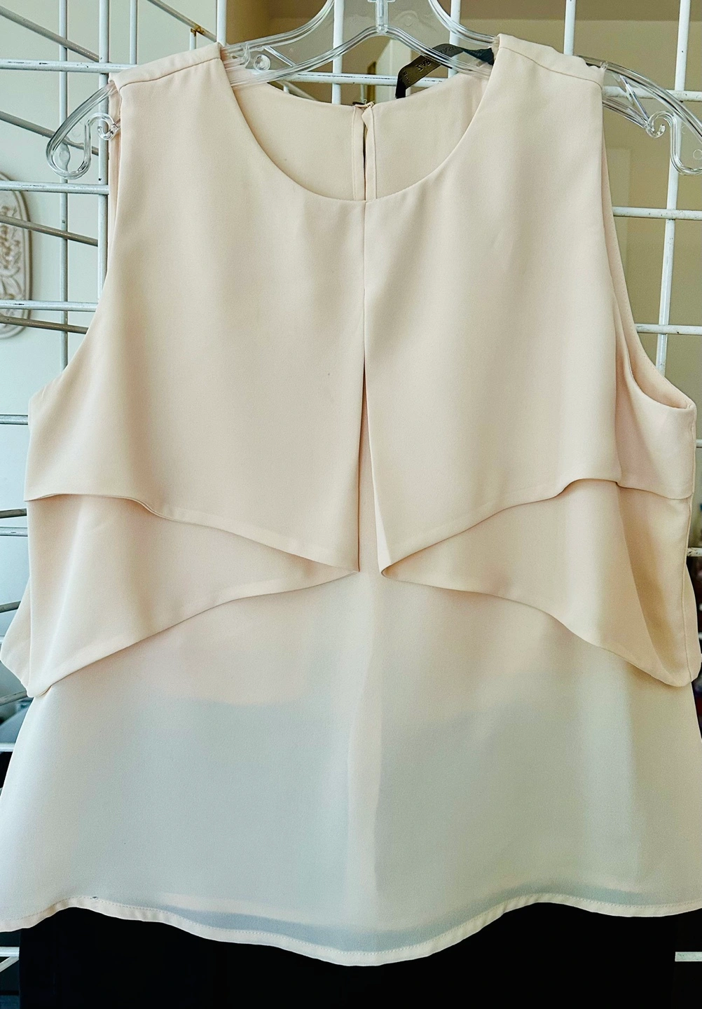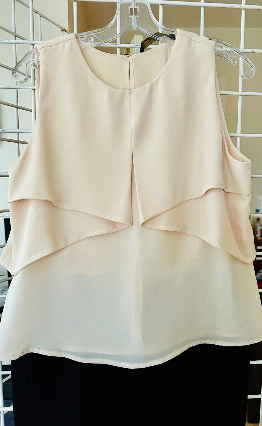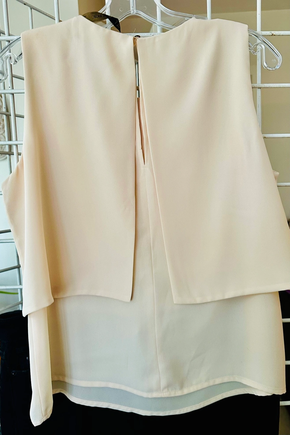 Cream-coloured sleeveless top. Features a layered design. Size Large. Made in Turkey.