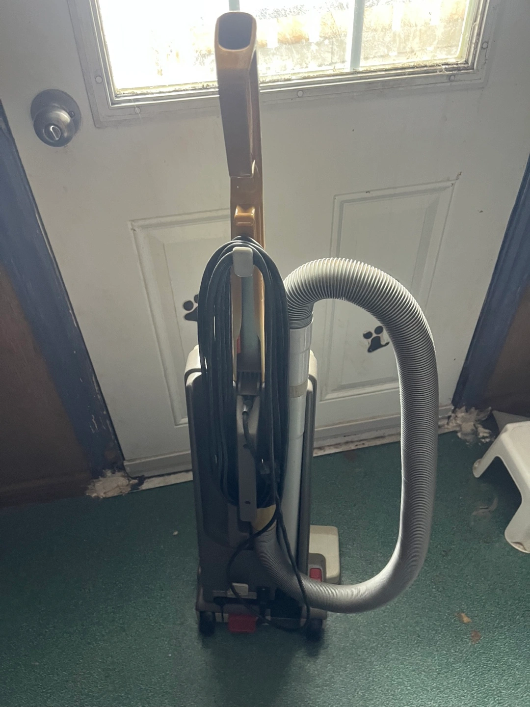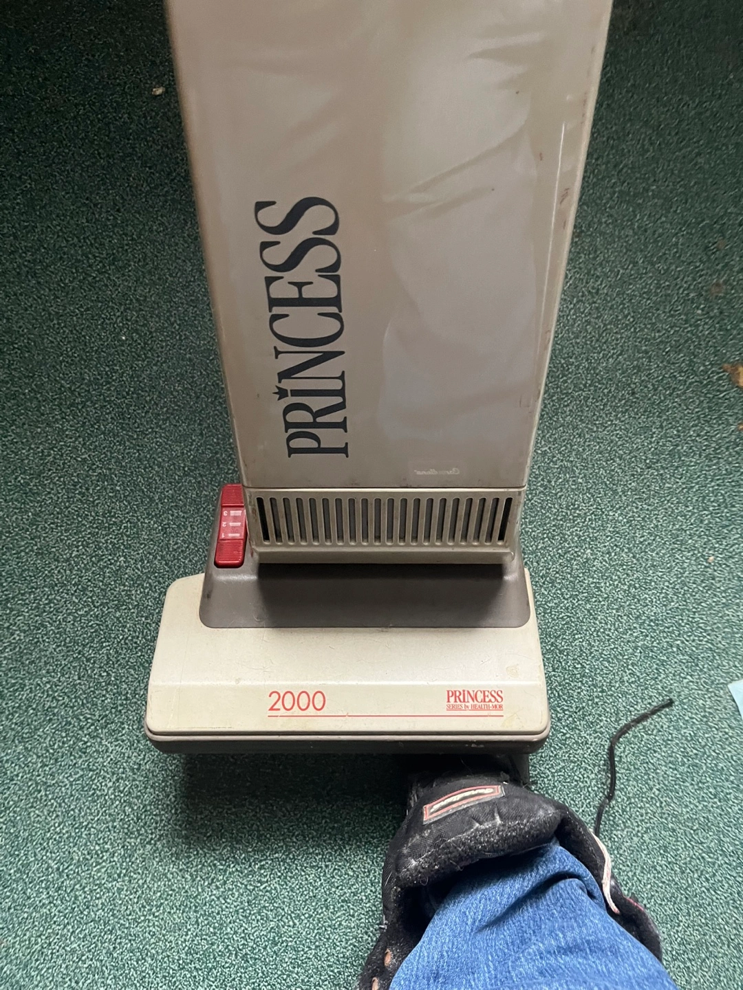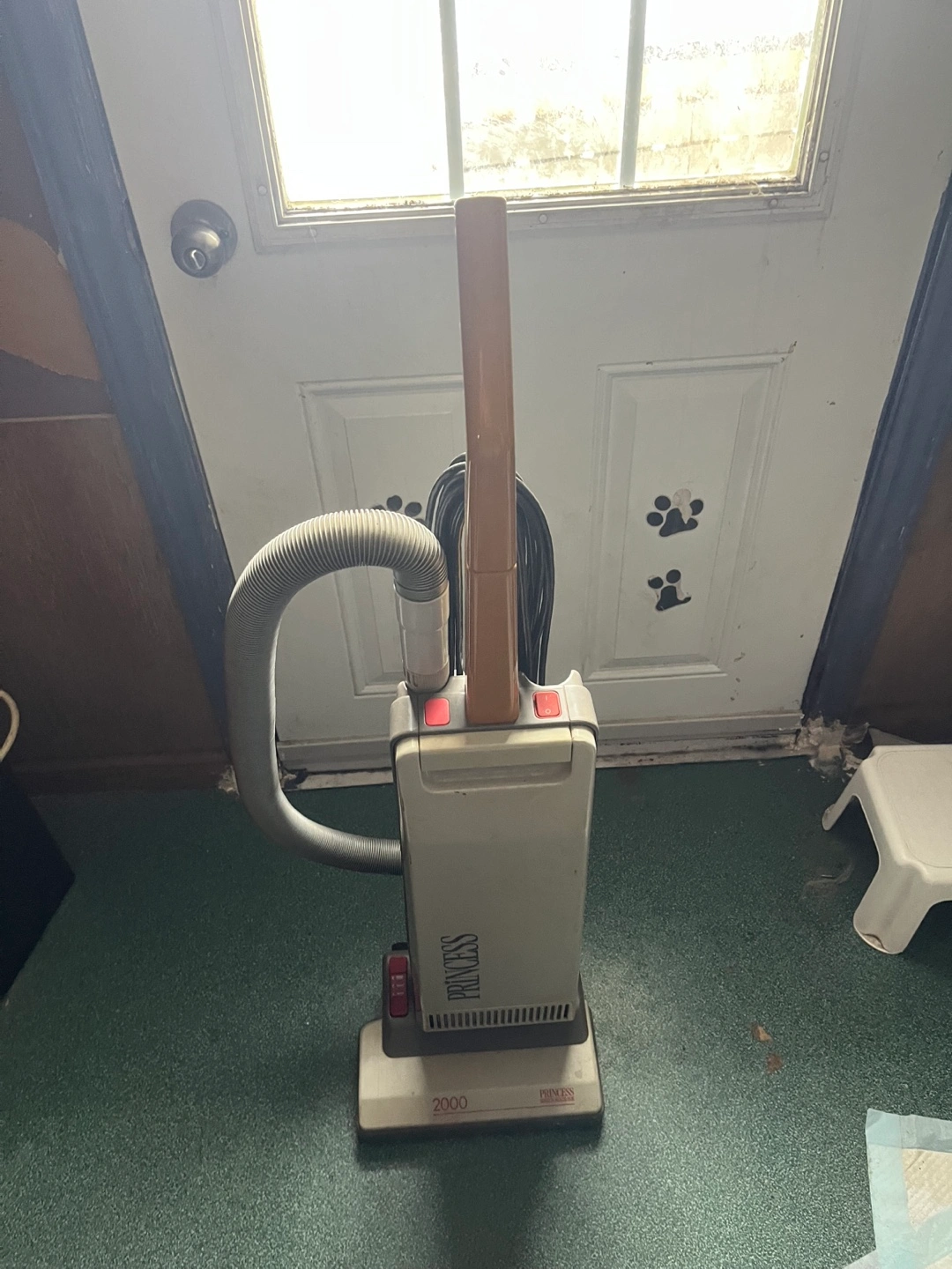 58Princess 2000 upright vacuum cleaner. Model 2000. Beige and grey colour. Features a long cord and hose. Shows some wear. Plus have extra bags for it.