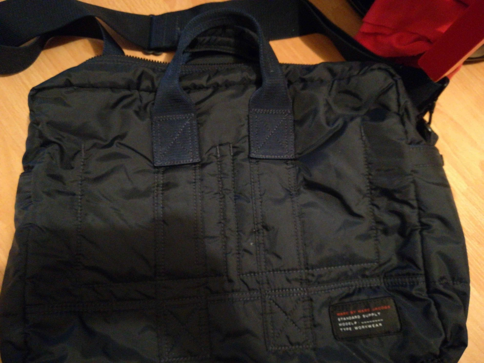 31Small navy blue messenger bag. Padded nylon material. Adjustable shoulder strap. Multiple compartments. Durable stitching. Excellent for everyday use.