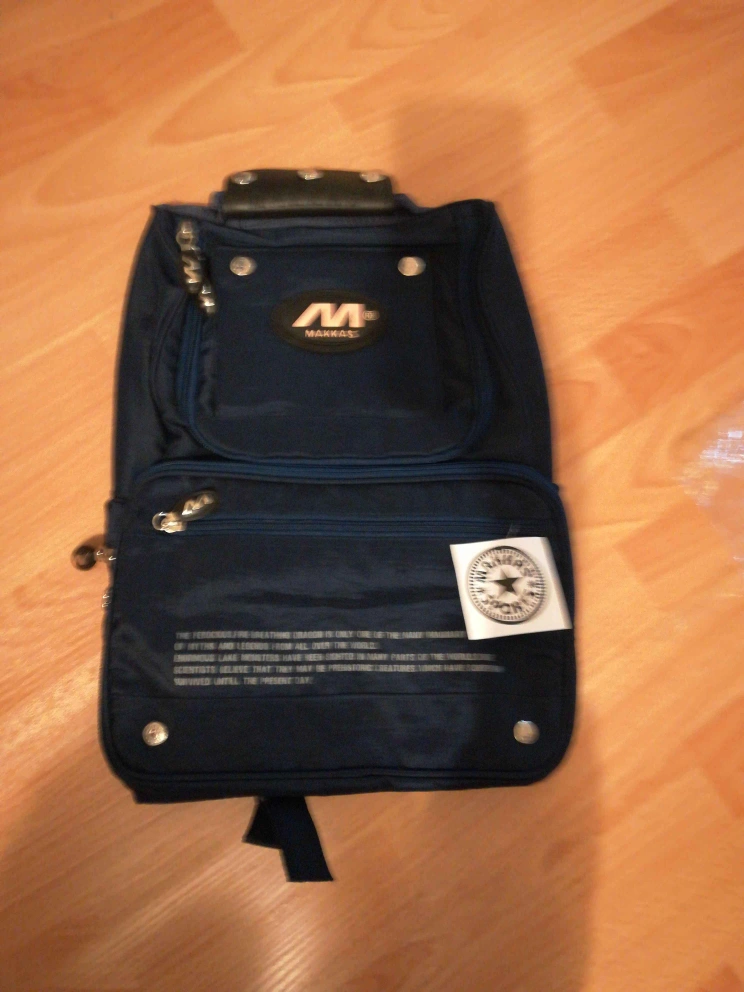 Durable navy blue shoulder bag. Features multiple pockets and compartments. Zippers and straps appear to be in good condition. Suitable for everyday use.