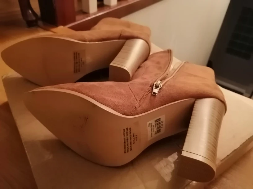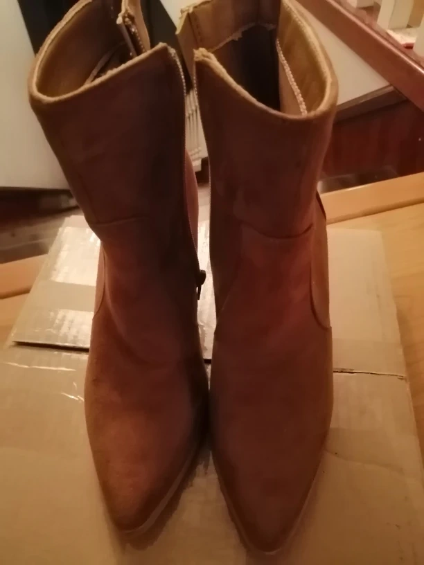 These are comfortable and stylish ankle boots. They have a block heel and a pointed toe. 9 inches (including 4 inch heel) BRAND NEW TAGS STILL ATTACHED. NEVER WORN Colour is closest to 2nd image. They are just a bit too tight for me. I usually wear between a 7 and 7.5. These would fit a 6.5/7. Paid $40 plus taxes Pickup up downtown or East Vancouver