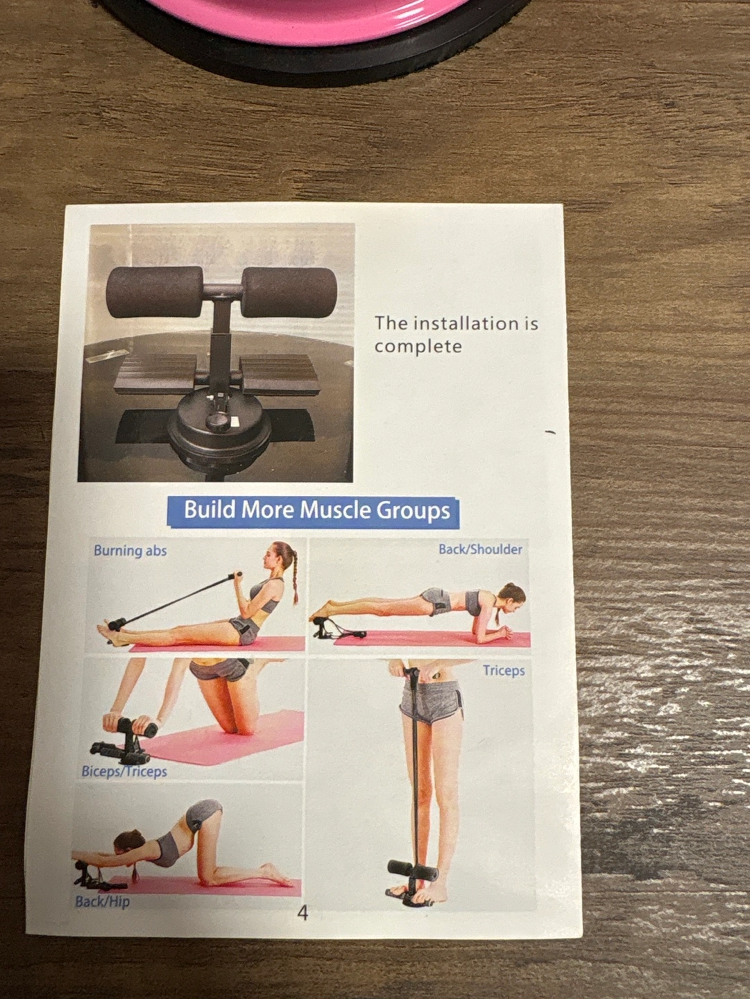 New Pink Sit-Up Bar with Resistance Band