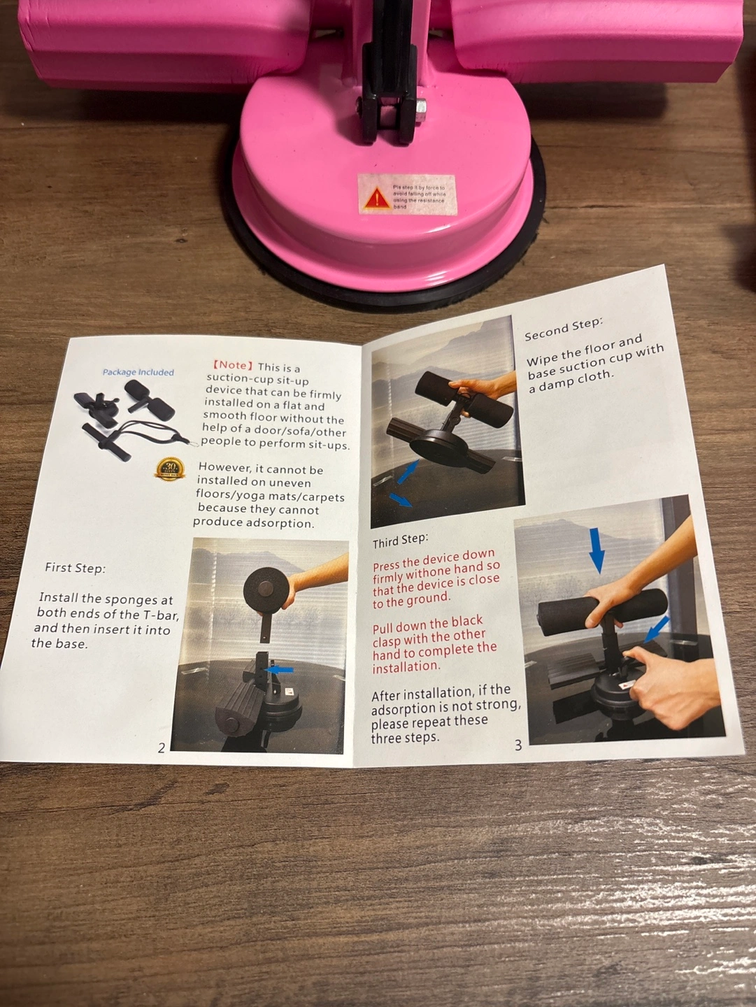 Portable sit-up bar. Features suction cup base and resistance band. Great for core and upper body workouts. Instructions included.