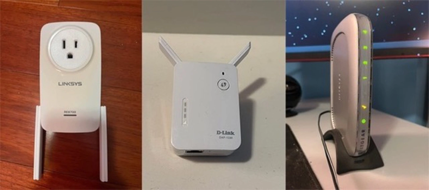 103Everything works perfectly and is in good condition Comes with: 1x Linksys RE6700 Wi-Fi Extender 1x D-LINK Wireless N300 Range Extender with 1 Ethernet Port (DAP-1330) 1x Netgear RP614 Router (w/ power cable) - Extend the range of your existing Wi-Fi network and eliminate dead zones - Helps find the best location for optimal coverage - More reliable coverage - Ideal for homes that are pre-wired for Ethernet and for extended wireless coverage - Easily access all features through the new user interface - Up to 300Mbps wireless performance for reliable, everyday performance - Compatible with virtually all wireless devices and routers - Quickly setup your wireless range extender with the push of a button - Extends the range of your Wi-Fi network to hard to reach areas inside or around your home where you can't get a Wi-Fi signal - Smart Signal Indicator, Helps you find the ideal placement location for your Range Extender - Delivers Wi-Fi speeds of up to 300Mbps - Fast Ethernet Port, Connect a wired device to your wireless network - One Button Setup, Makes setup as simple as pressing the WPS button - Works with any Wi-Fi devices - Supports Secure Wireless Encryption using WPA or WPA2 Security