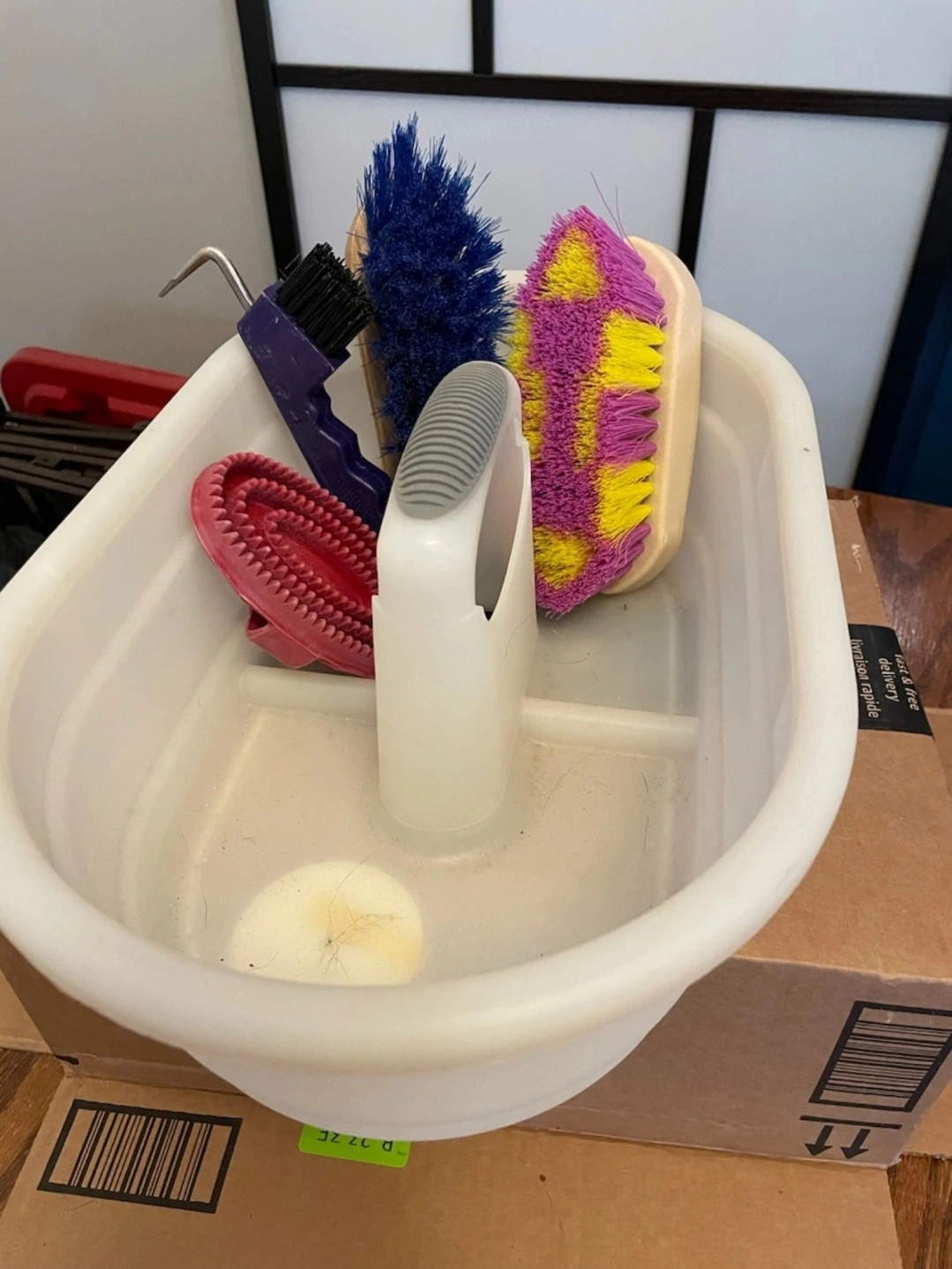 74Horse tack kit for a fellow horse rider. $20 Equestrian grooming kit to care for and bond with your favourite horse! Comes with: - hoof pick - curry comb - body brush - finishing brush - grooming caddy Was received as a gift but never used it. Hoping it's new owner can change that ***also selling youth riding pants & leather riding gloves in separate listings π*** Pickup in Barrhaven on Cambrian near Half Moon Bay Park *Cash only* πΉπ P.S. to anyone reading this post -- hope you are having a great day and special reminder that you are beautiful (in case you forgot) π πΉ