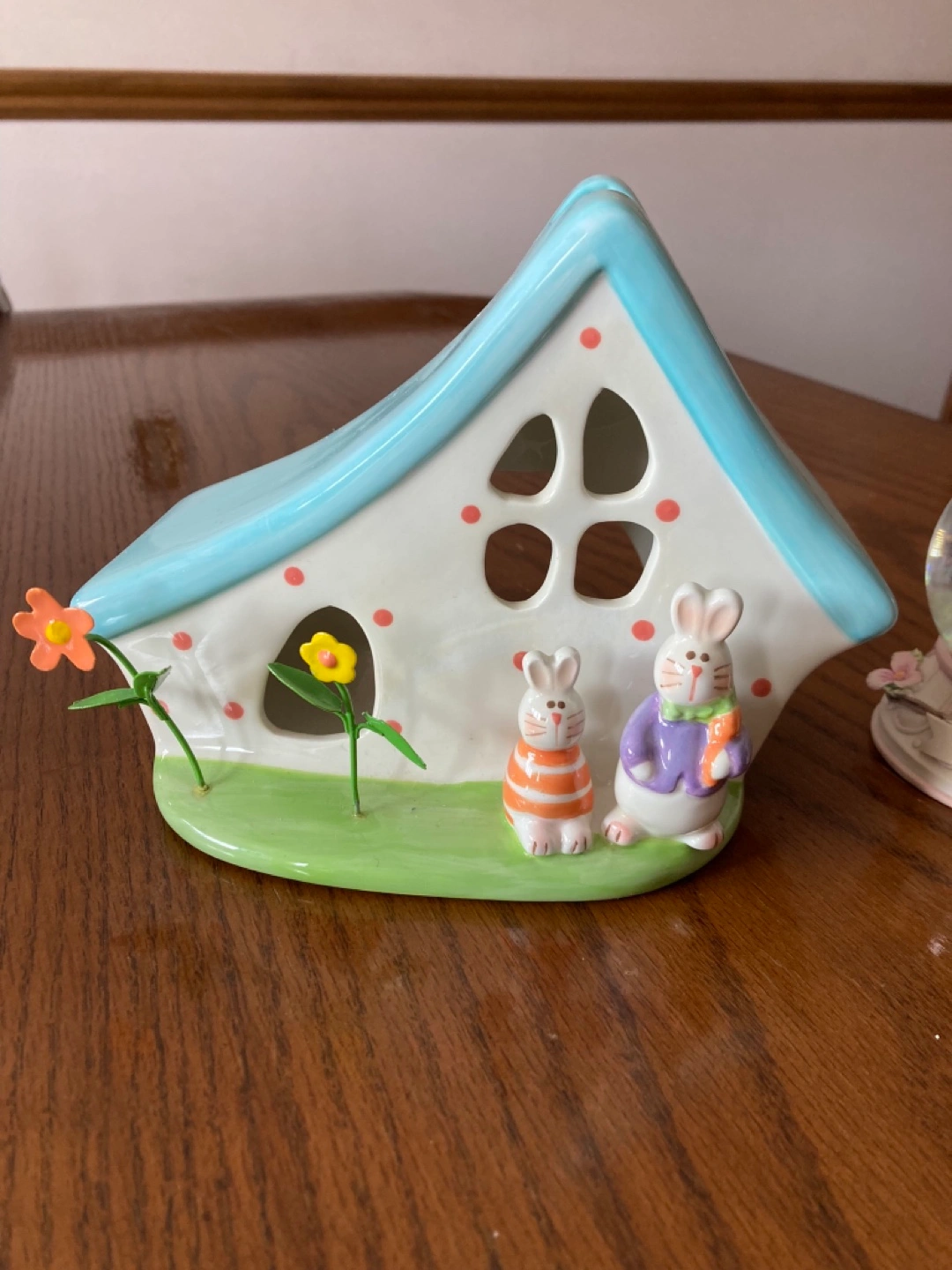 Adorable Easter Bunny House Candle Holder and Snow Globe