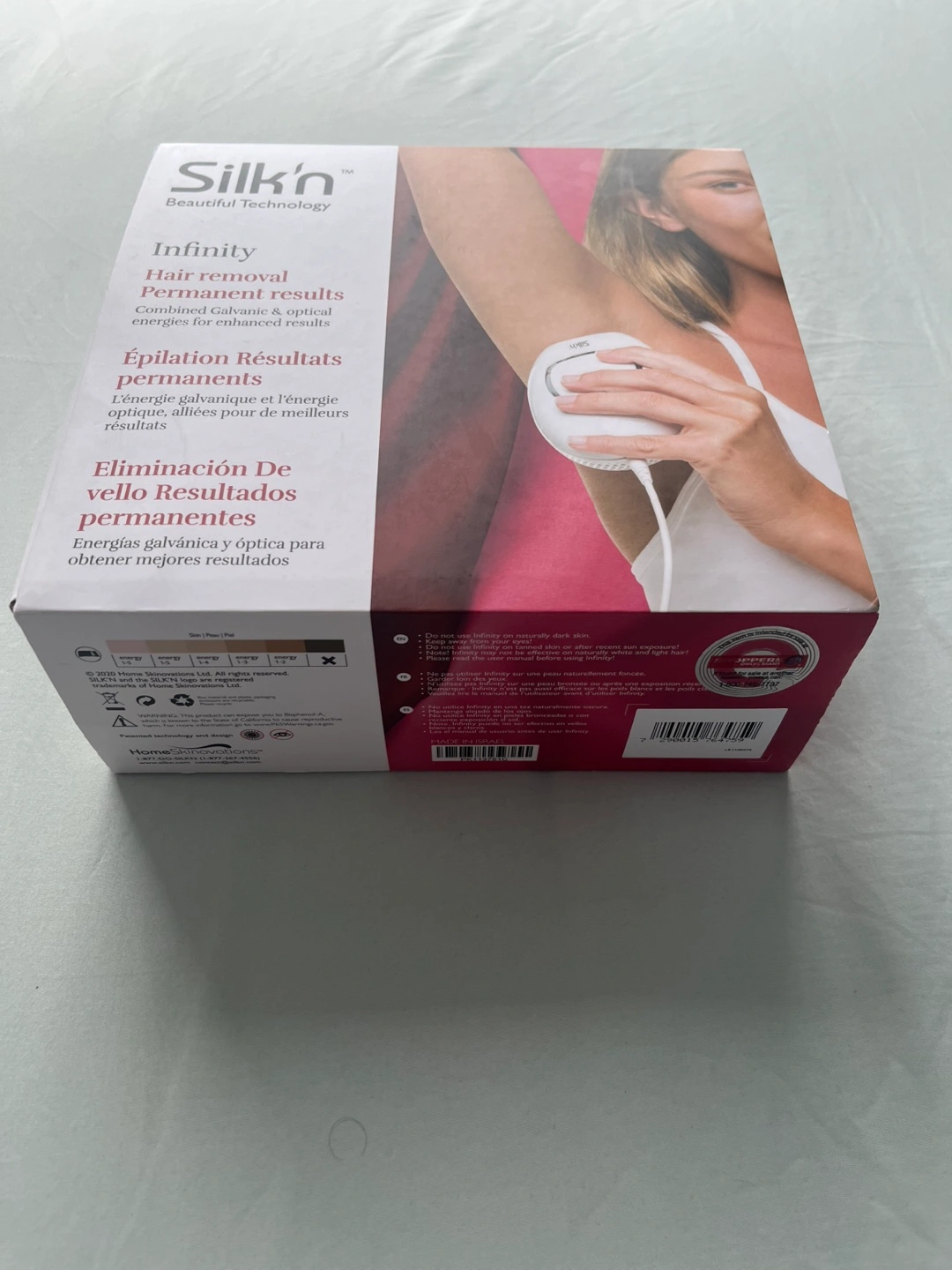 Used Silk'n Infinity hair removal device. Includes device, power cord, carrying case, and instructions. Excellent condition.