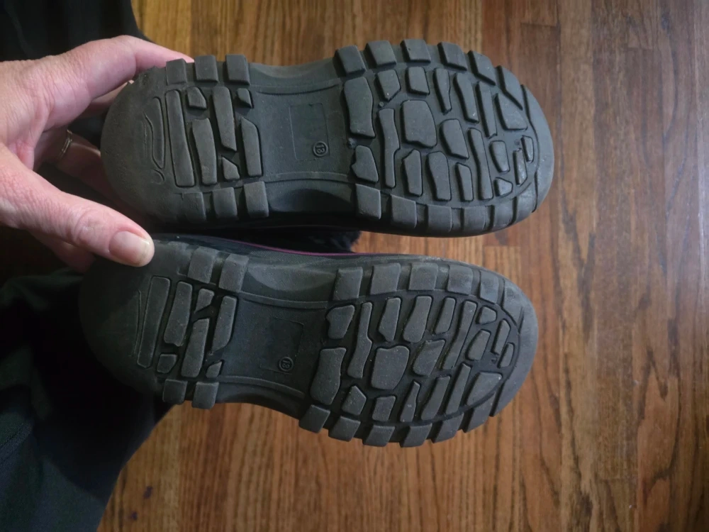 These kids' winter boots are in good condition and ready for some snowy adventures! They are black with a fluffy lining and have a cute floral design. The size is 13.