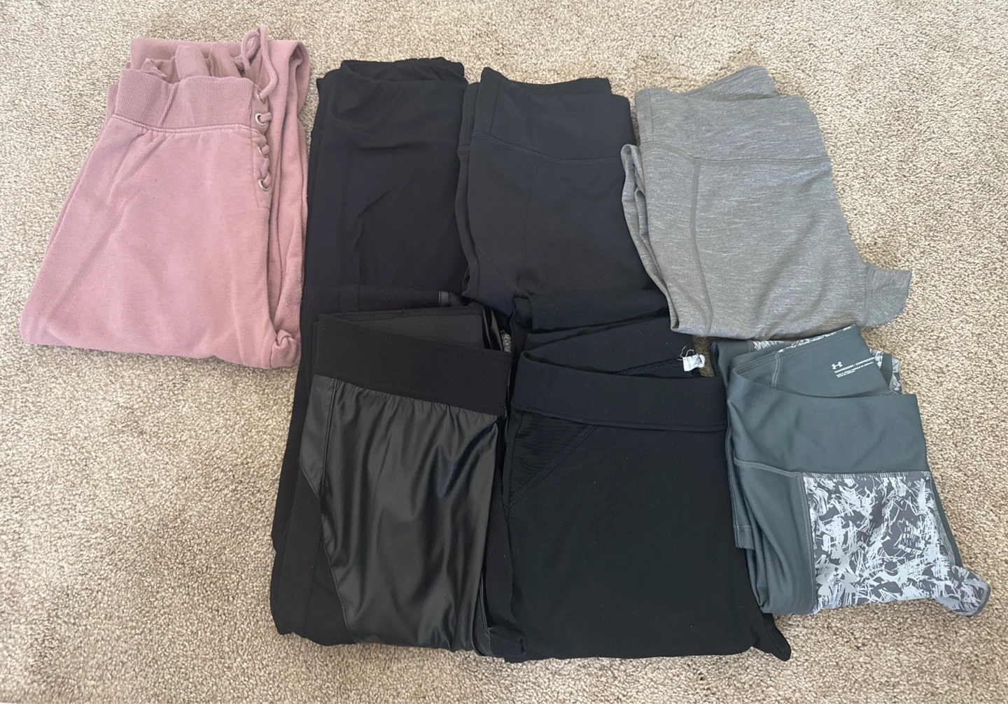 Selling a mixed lot of women's leggings + one pair of pink joggers in various colours and styles. Perfect for workouts or casual wear!