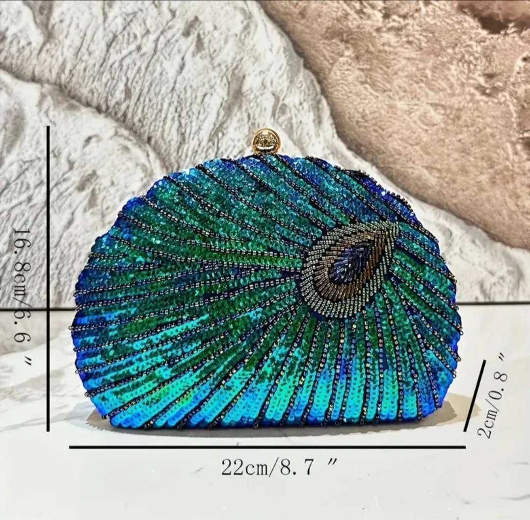 š§”Brand new Peacock Sequin Clutch Evening Bag