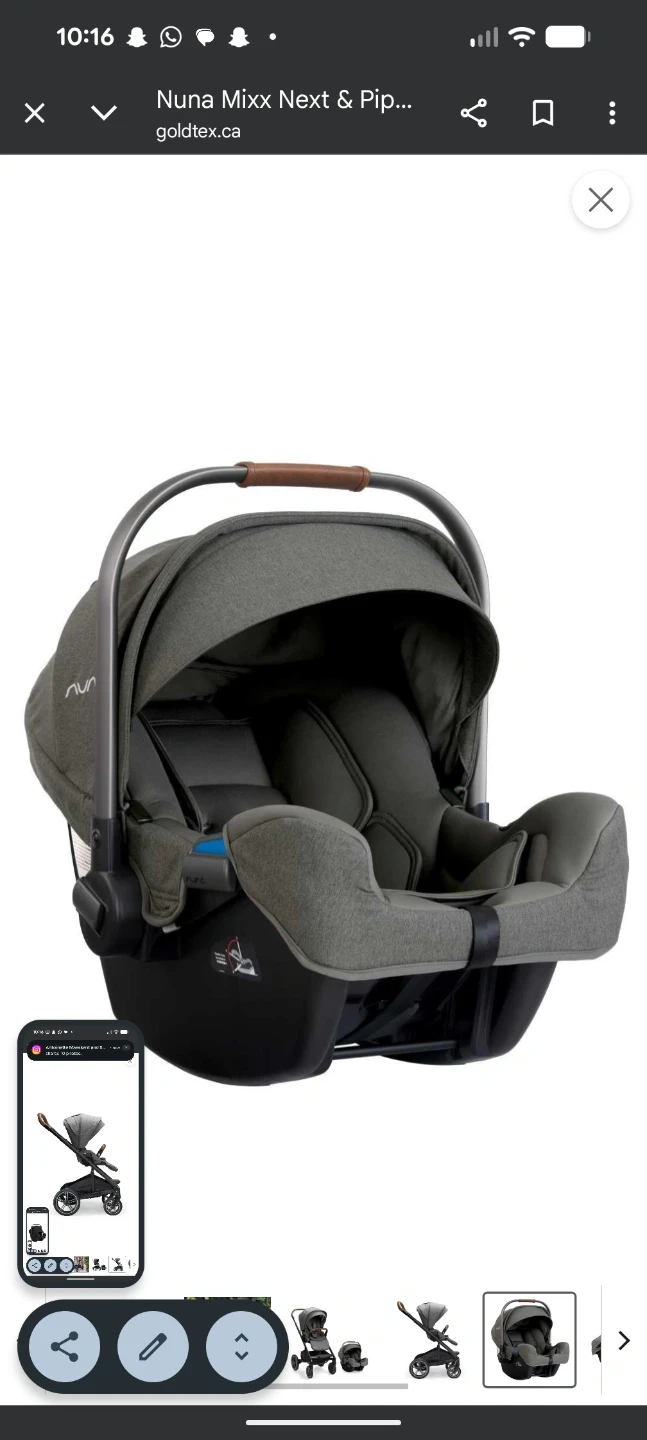 Selling a Nuna Mixx Next stroller and Pipa car seat combo! These are great for getting around town with your little one. The stroller is super smooth and easy to maneuver, and the car seat is safe and comfy. It has the best canopy to ensure a perfect no for your little one. Comes with foot muff for the winter, a coffee cup holder and little skip + hop pouch