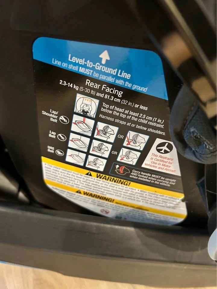 • Weight/Height Limits (Rear-Facing): 2.3–14 kg (5–30 lbs) and 81.3 cm (32 in) or less.
