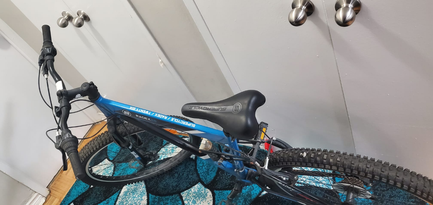 Kept in excellent condition. Mountain Bike. Barely used. Selling because I no longer have time to ride it. Still have 2 years warranty remaining on the frame. Pickup Donmills and St. Dennis. $150.