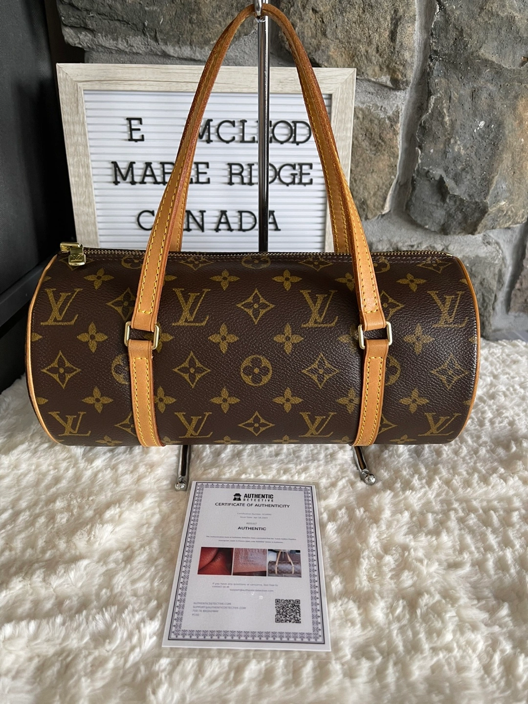 Pre-owned Louis Vuitton Papillon handbag. Monogram canvas. Leather trim. Top zip closure. Double rolled top handles. Comes with certificate of authenticity. Interior is very clean. No stickiness no powdery and no foul smell. Pick up in east Maple Ridge