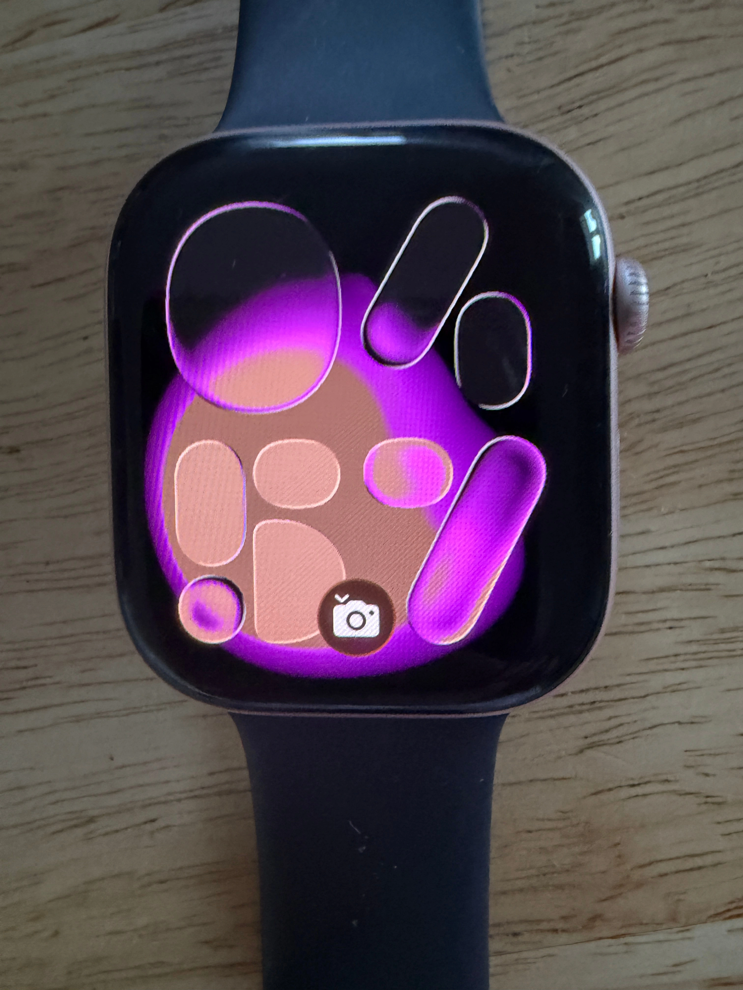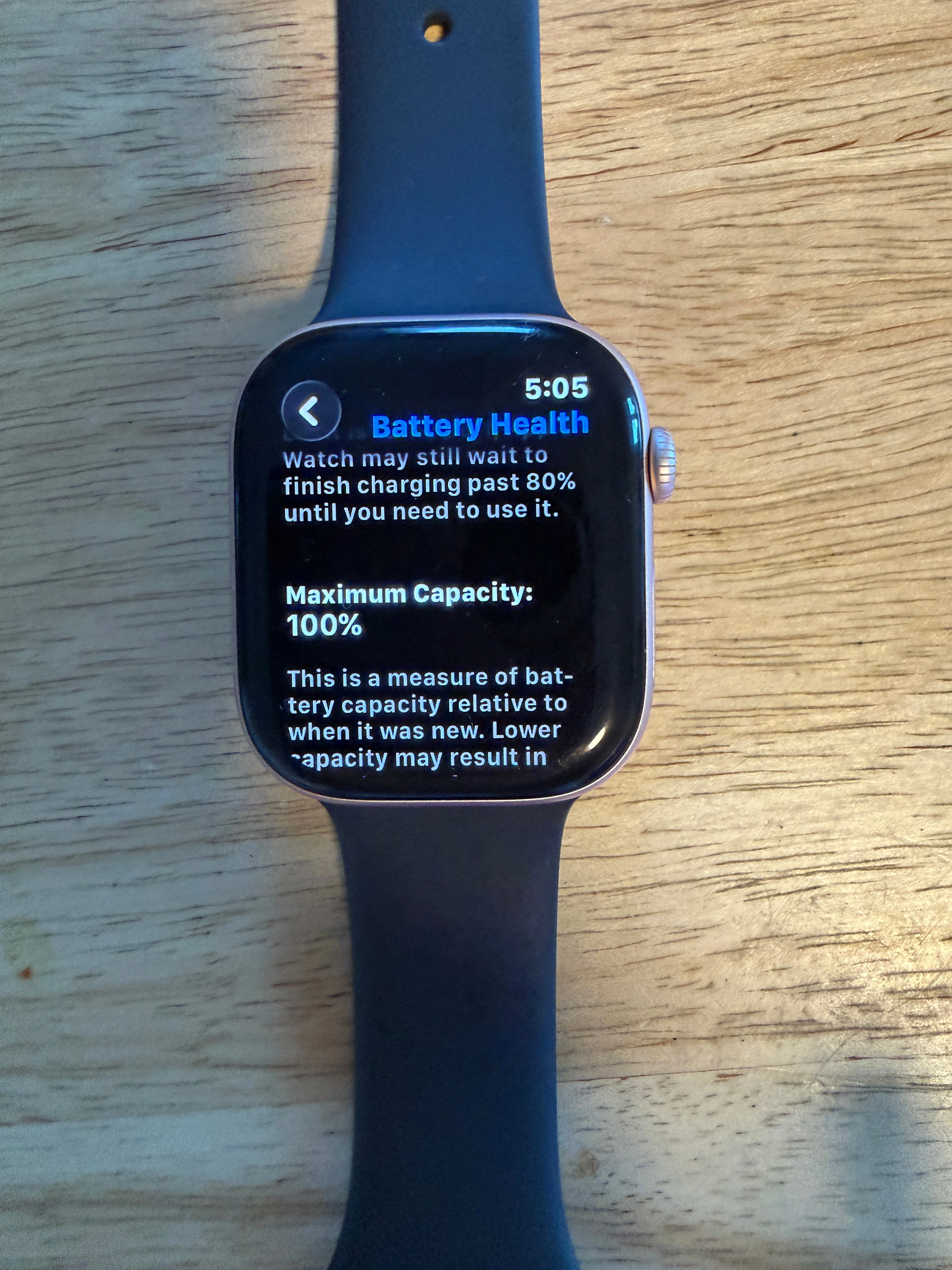 Apple Watch Series 10 [GPS 46mm] Smartwatch with Rose Gold Aluminium Case with Black Sport Band.