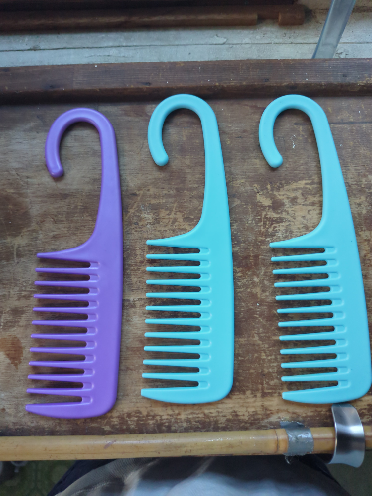 Selling a couple of hair combs, one in a nice purple and the other two in a light blue. They're great for detangling or styling your hair