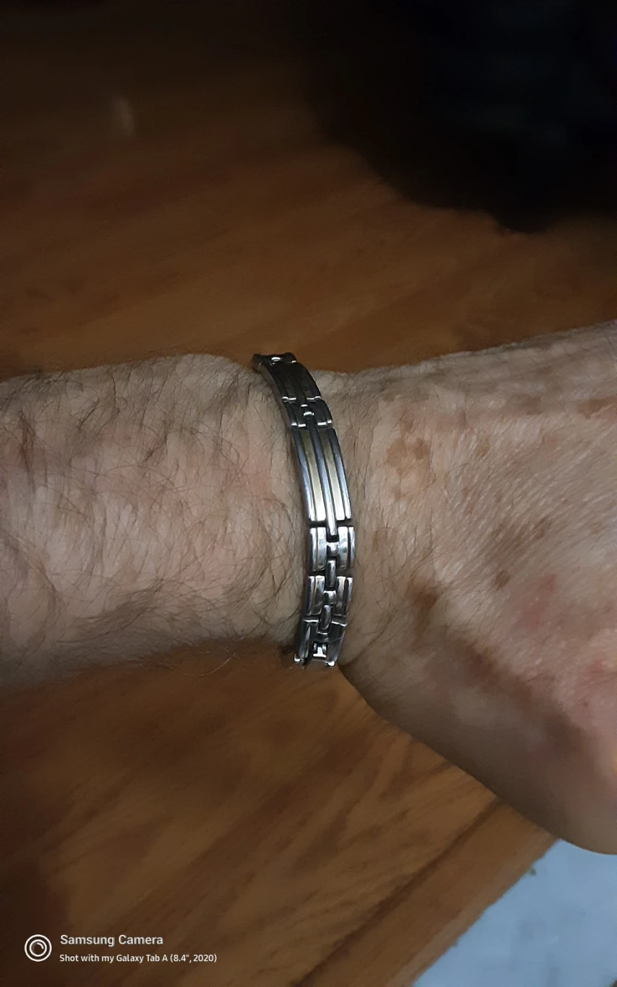 This Sabona bracelet is crafted from durable stainless steel gold plated . It features a classic link design. This bracelet is suitable for anyone looking for a stylish accessory.