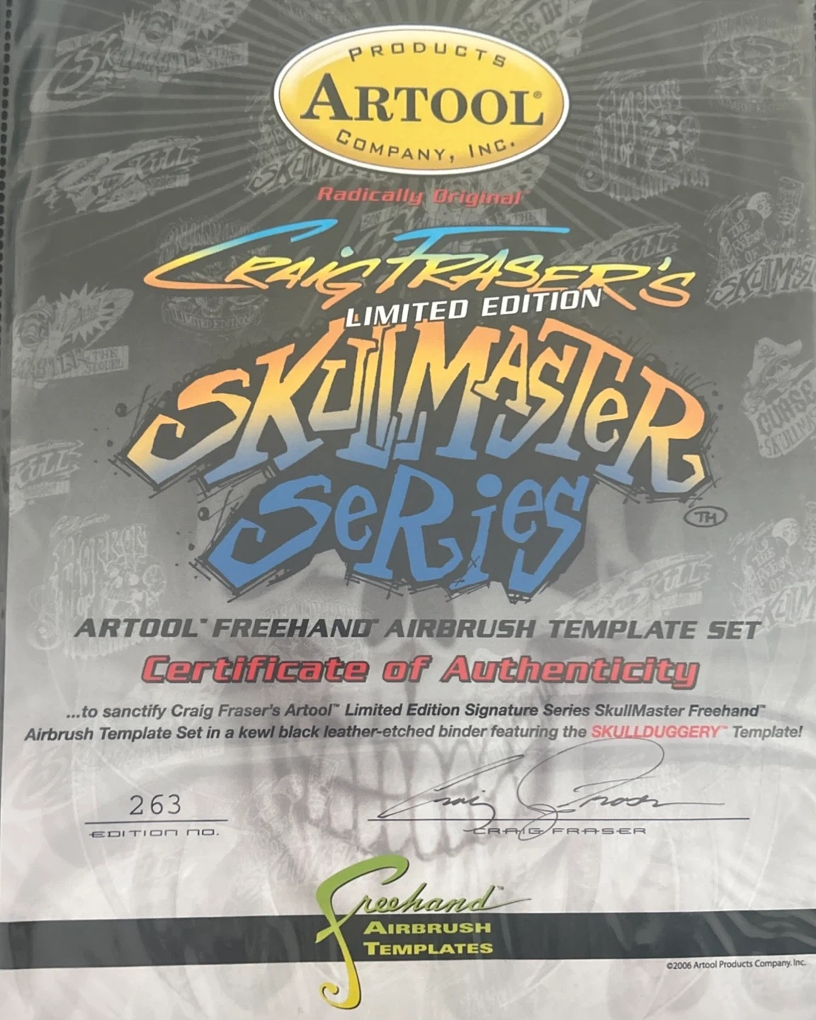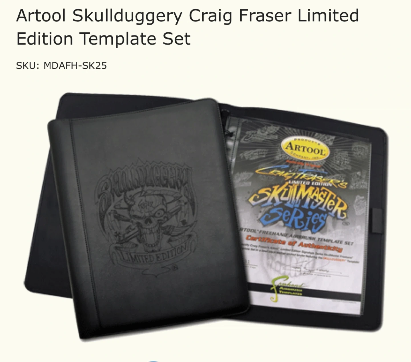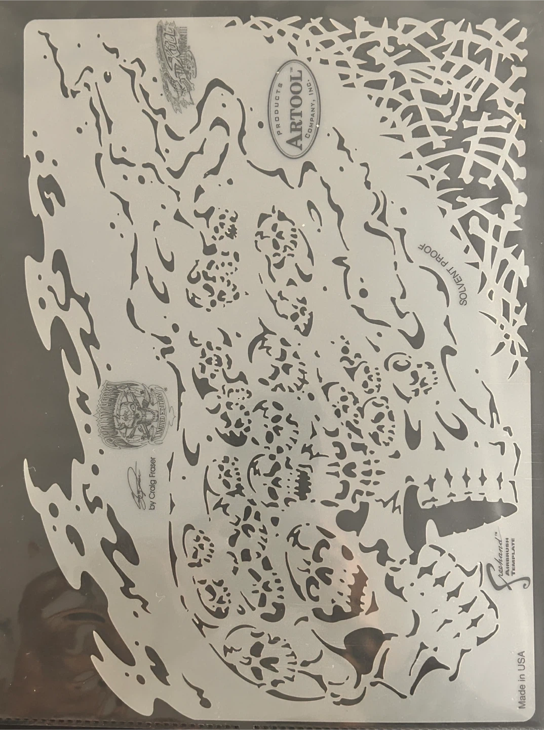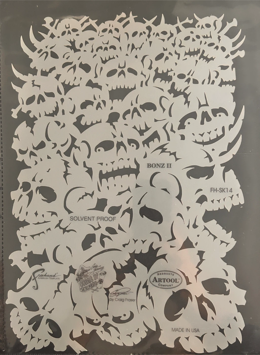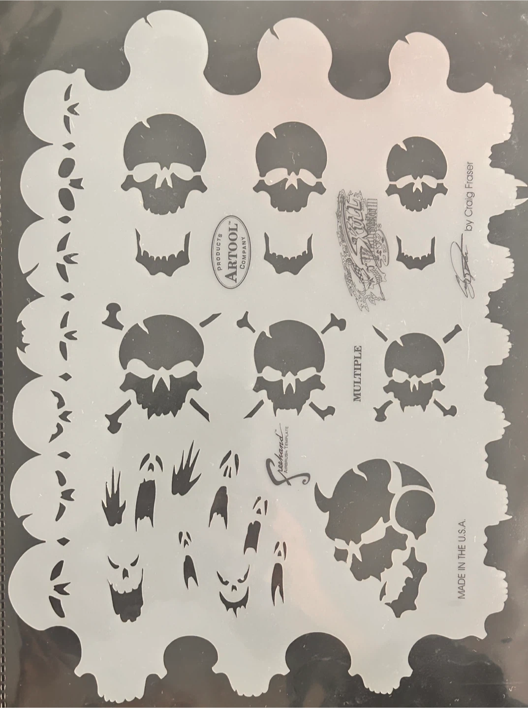 This is a limited edition Artool SkullDuggery Craig Fraser airbrush template set. It includes a Certificate of Authenticity. Made in the U.S.A.