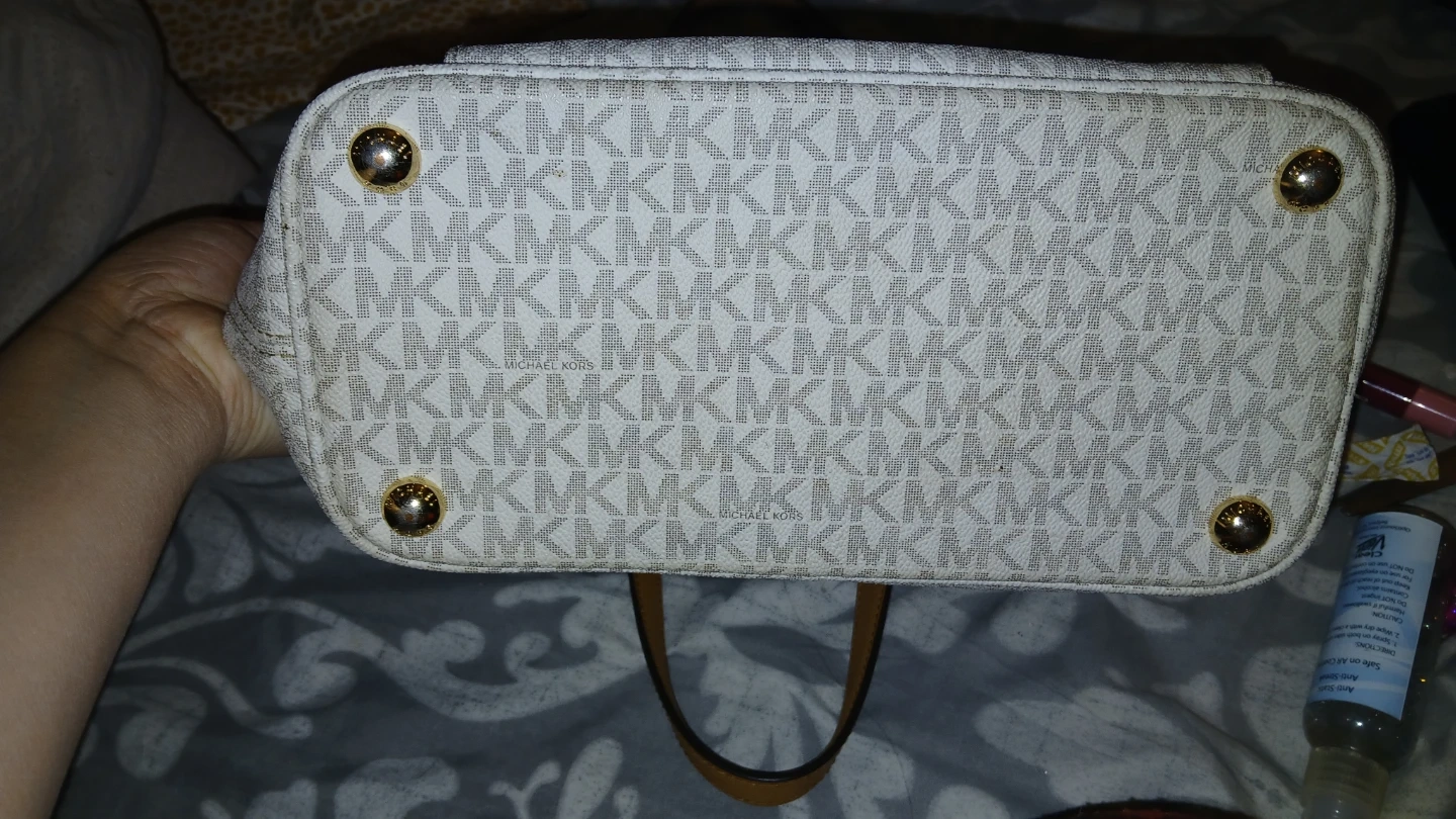 Used Vanilla cream Michael's kors tote bag .like new accidentally got stain in the back but I believe stain is removable with baking soda. Selling cheap because of it.