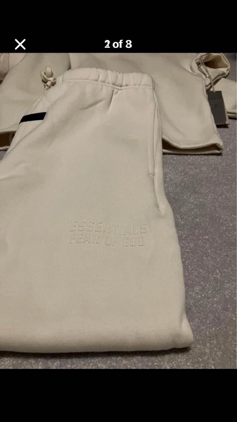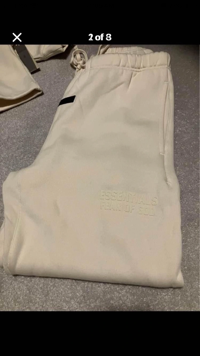 Brand new fear of god essentials sweatpants. Comes with dust bag. Size medium. Purchased from OAK. Egg shell colour. Authentic.