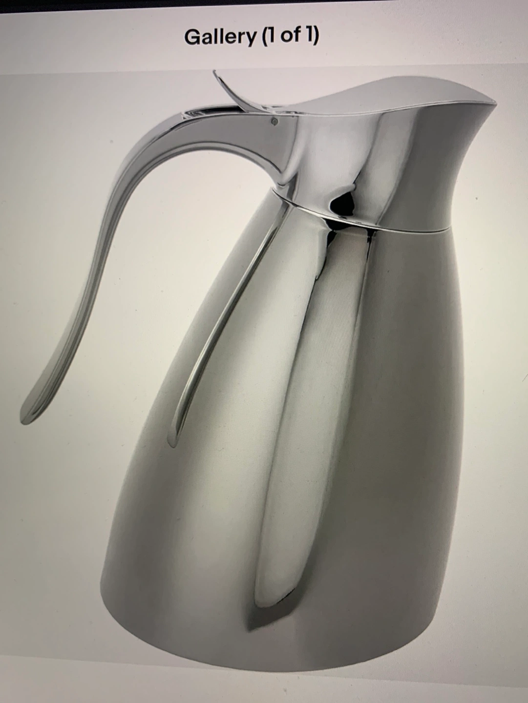 Sleek, polished chrome finish. Vacuum insulated to keep beverages hot or cold. Elegant design, perfect for serving coffee or tea. It’s hard to take a good photo of a shiny thing.