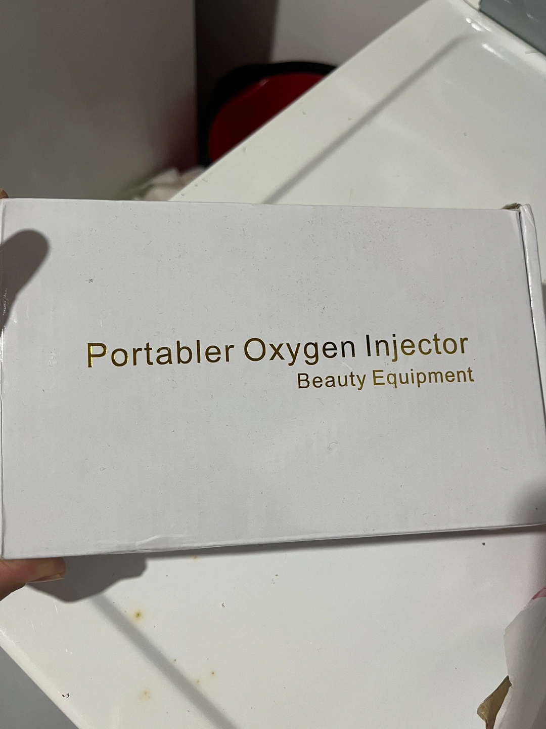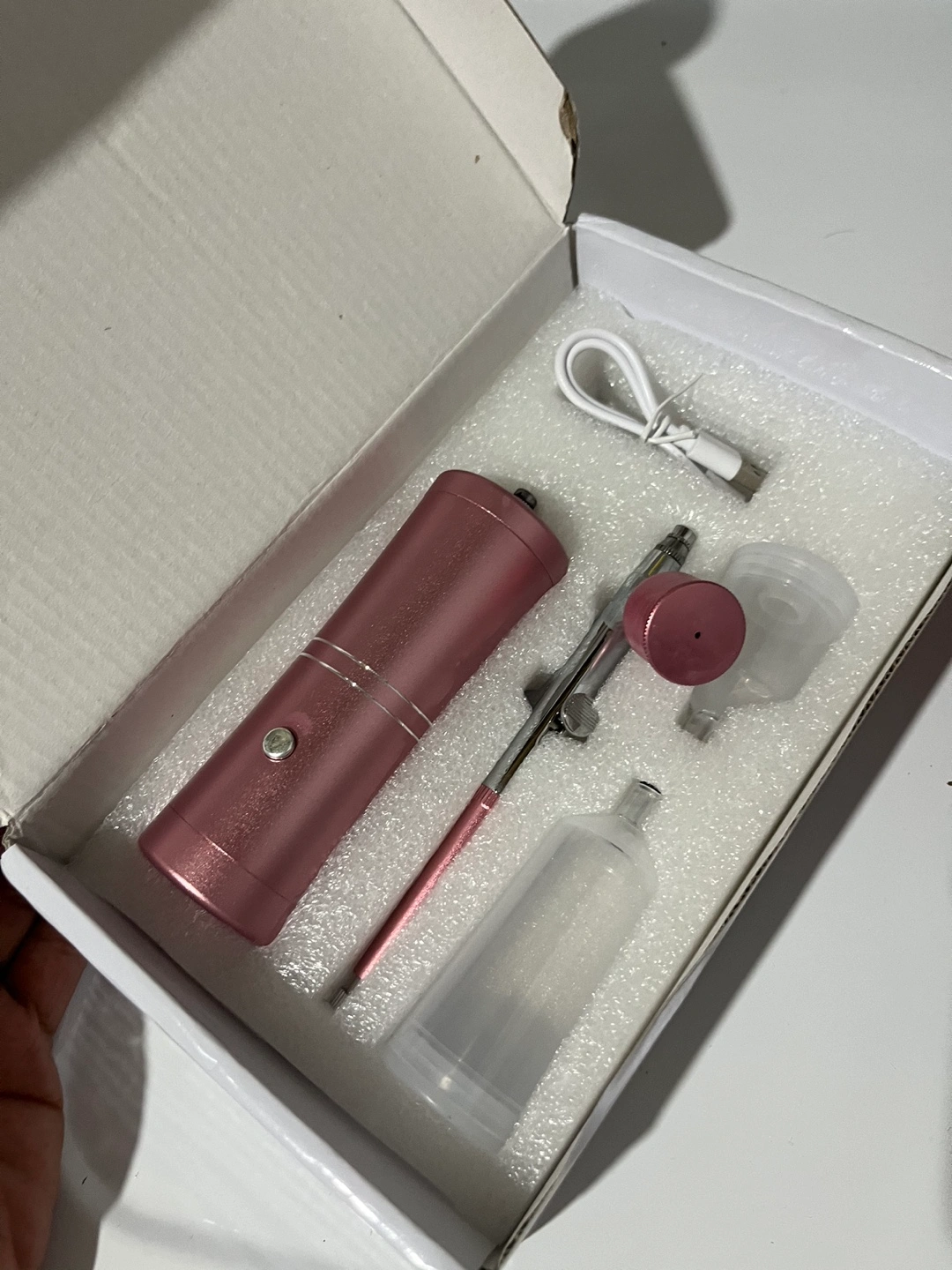 Rose gold portable oxygen injector. Includes device, airbrush, two containers, and charging cable. Great for skincare.nail ombré use.