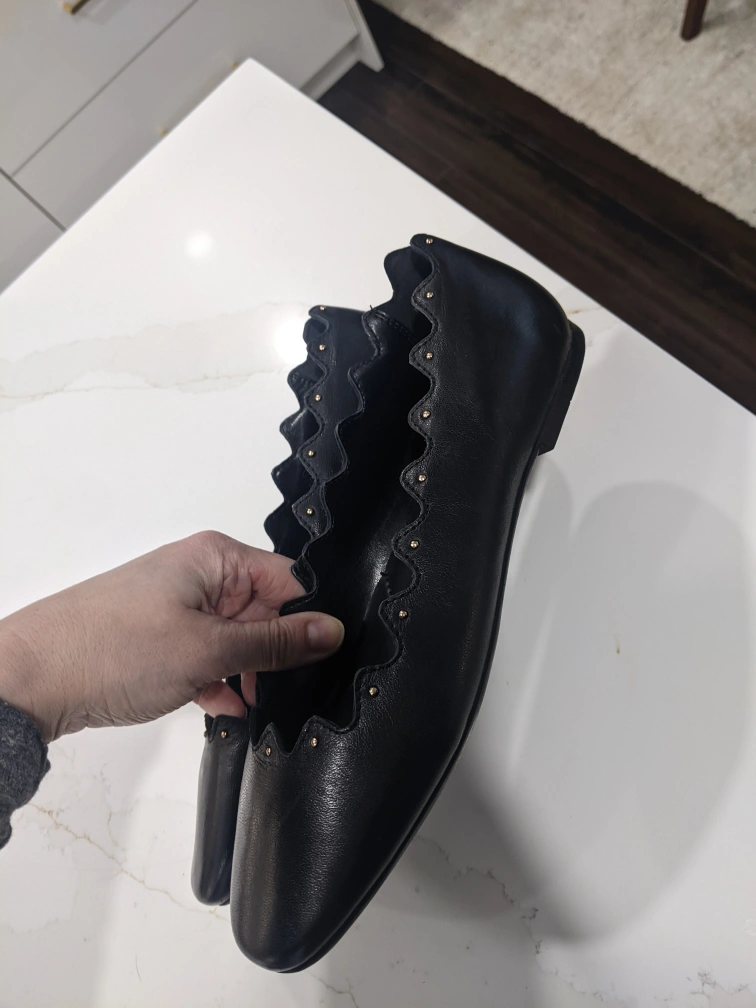 Genuine Leather Black Scalloped Flats