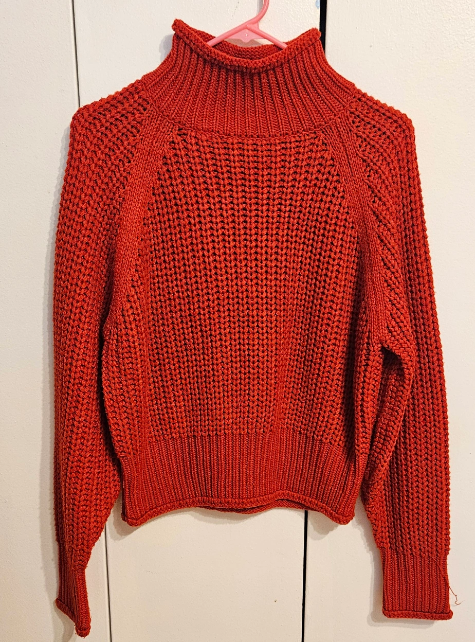 1000+Cozy red sweater. Mock neck. Long sleeves. Cropped length. Knit texture. pick up only*** no meet-ups