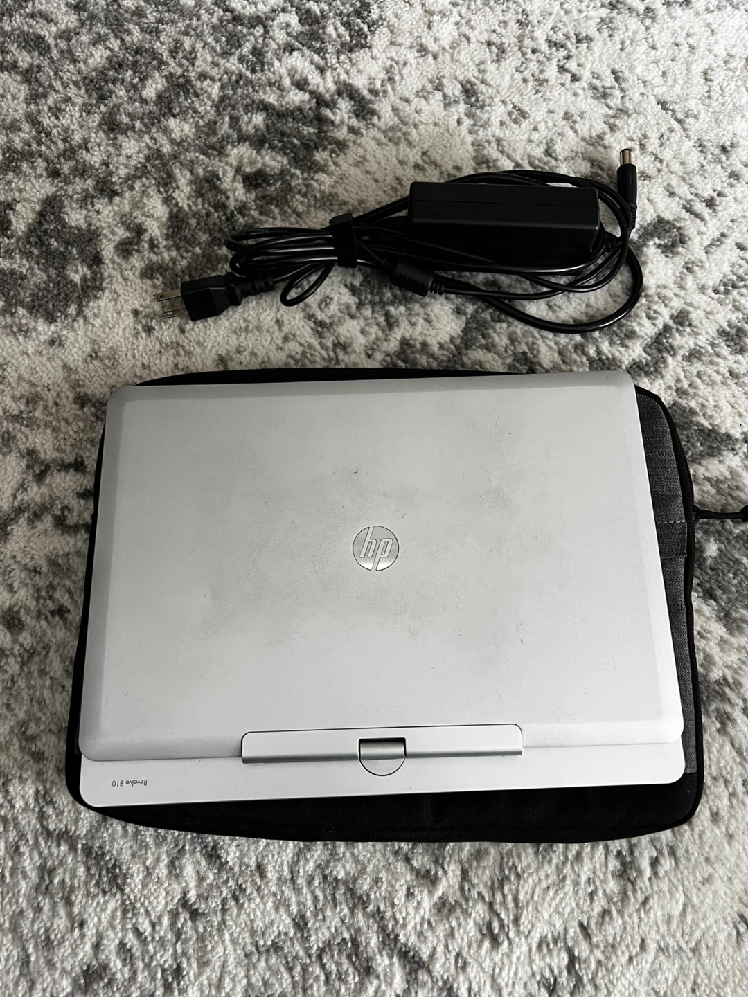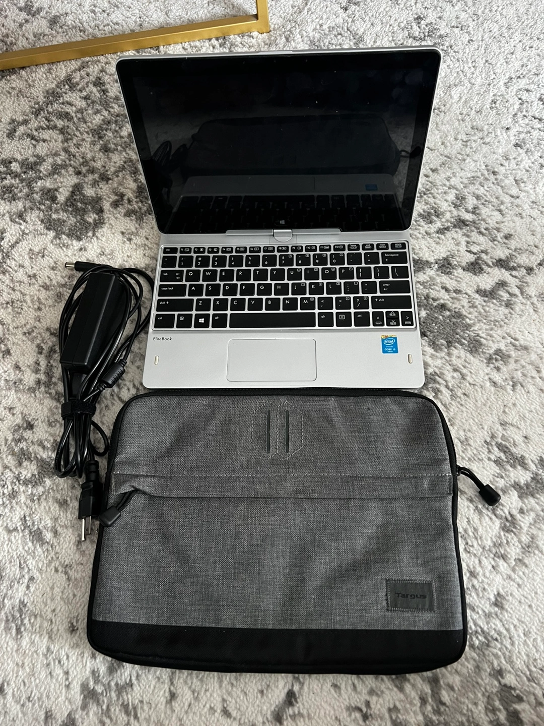 Silver HP EliteBook Revolve 810 G1 2-in-1 PC. Detachable keyboard. Includes charger and Targus carrying case. Okay condition. Needs repairs