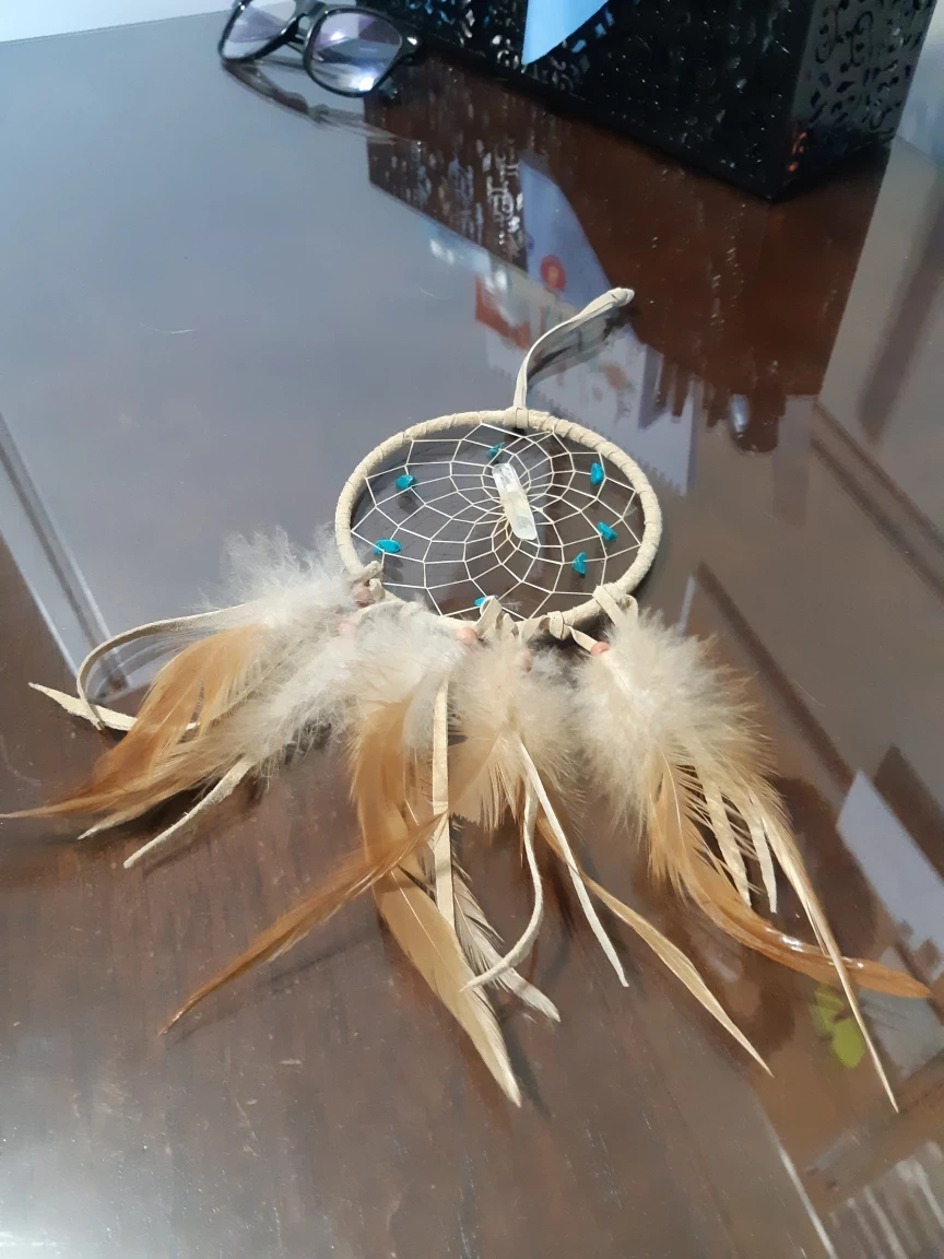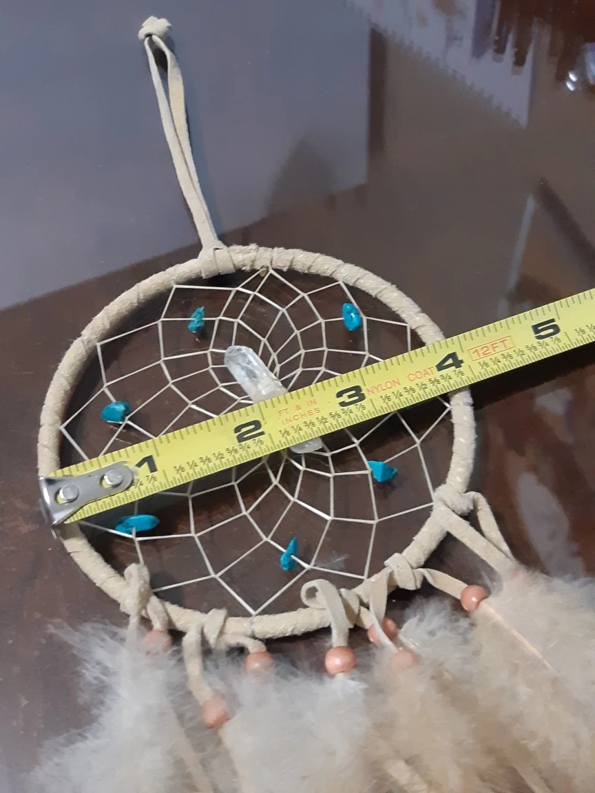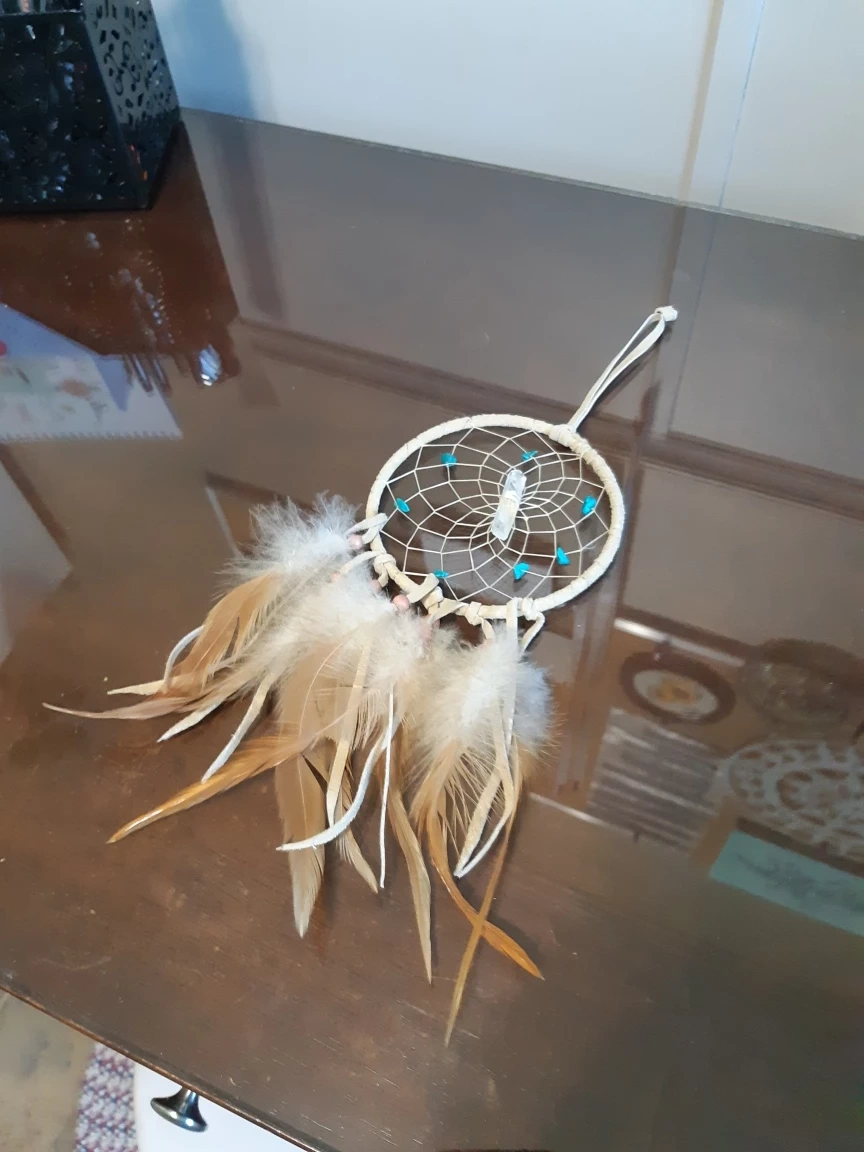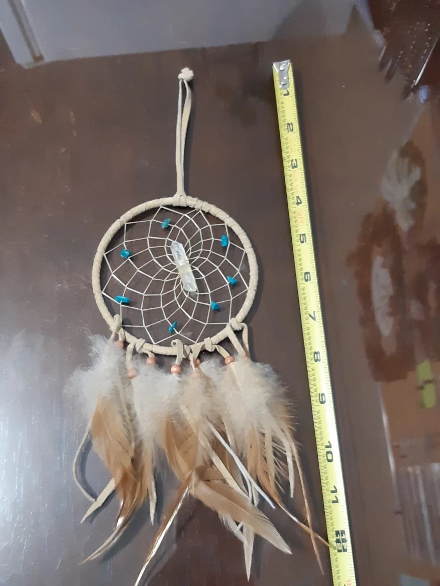 Selenite Wand Dream catcher of peace. Composed of natural tones and elements. Beautiful and unique. Check out the photos for angles and measurements. 15.00 obo. Located in braeside SW. Meetup options available. Currently offering free delivery within 5km of breaside. Crossposted. Still available if you see it here. Feel free to check out my other listings for more finds.