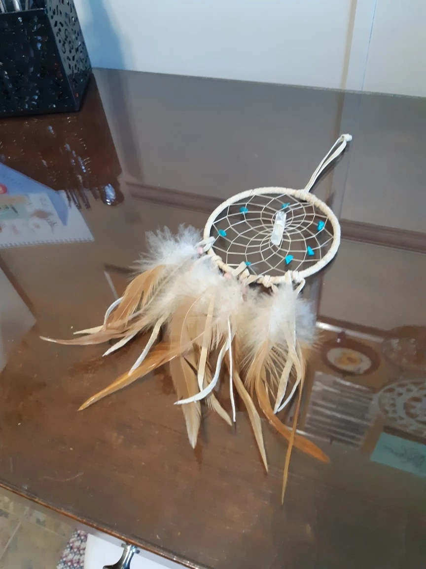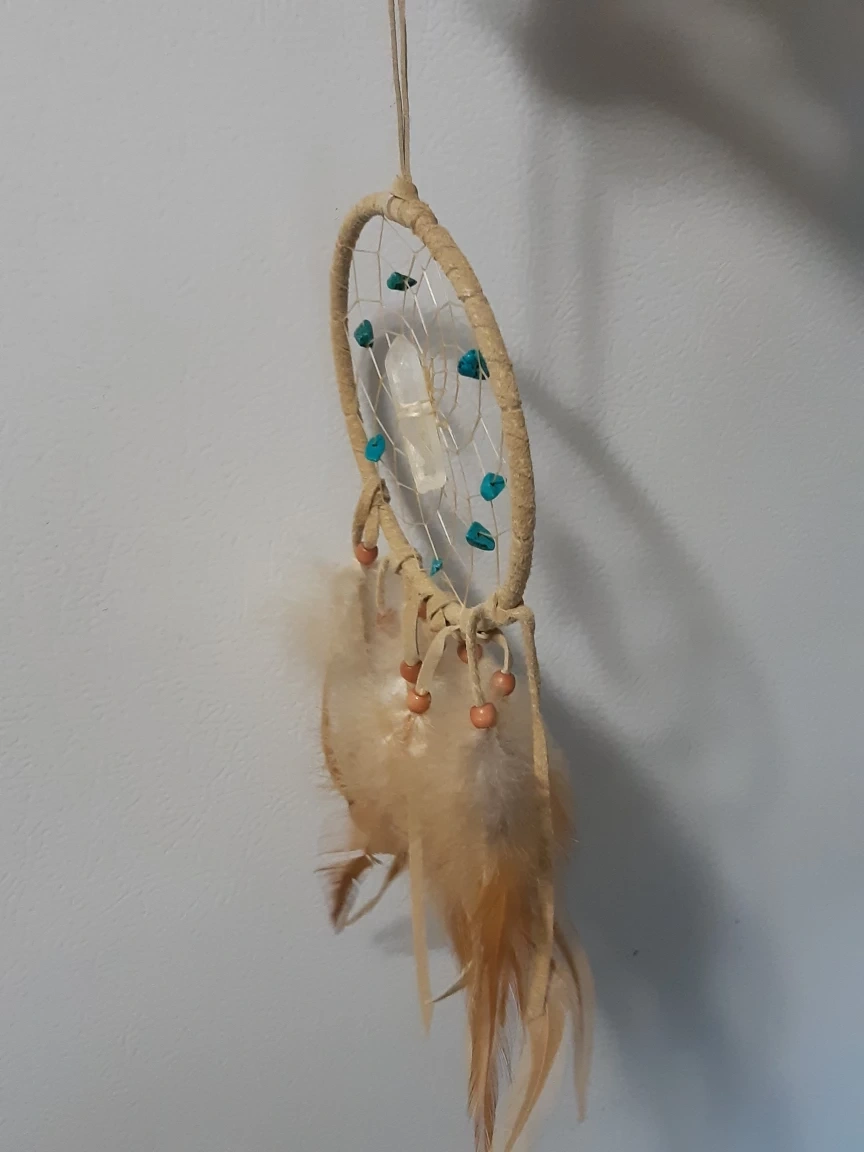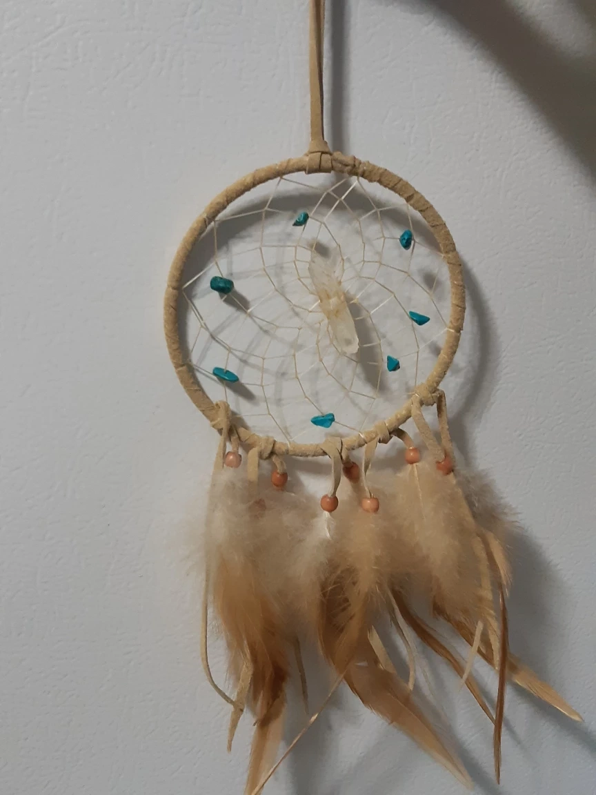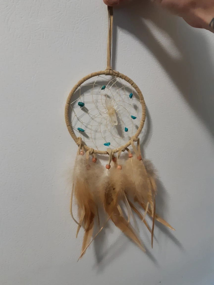 Selenite Wand Dream catcher of peace. Composed of natural tones and elements. Beautiful and unique. Check out the photos for angles and measurements. 15.00 obo. Located in braeside SW. Meetup options available. Currently offering free delivery within 5km of breaside. Crossposted. Still available if you see it here. Feel free to check out my other listings for more finds.
