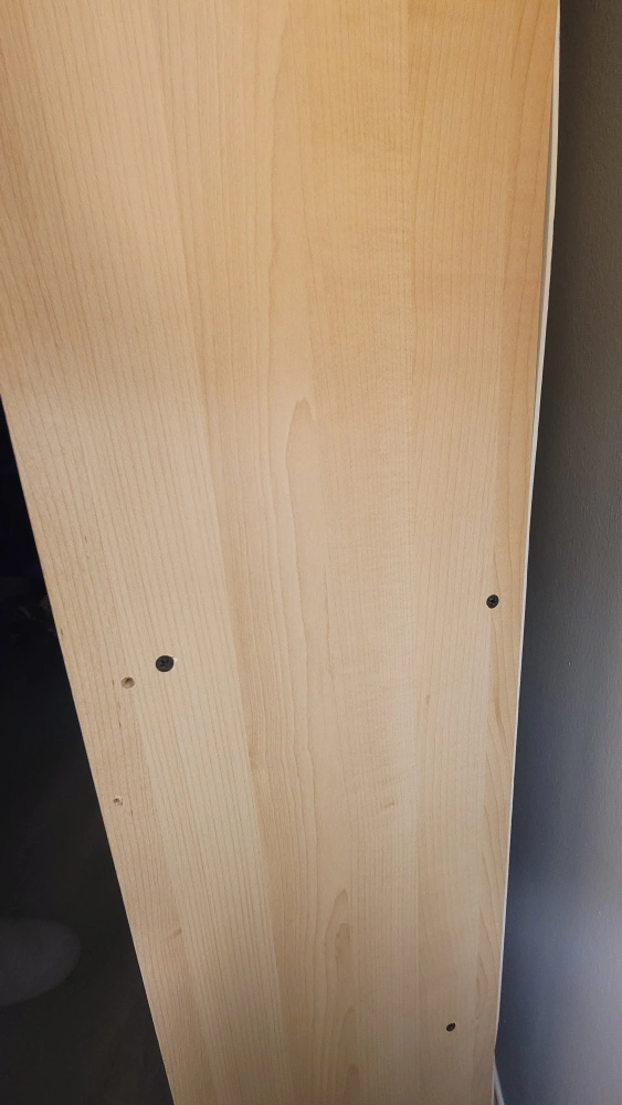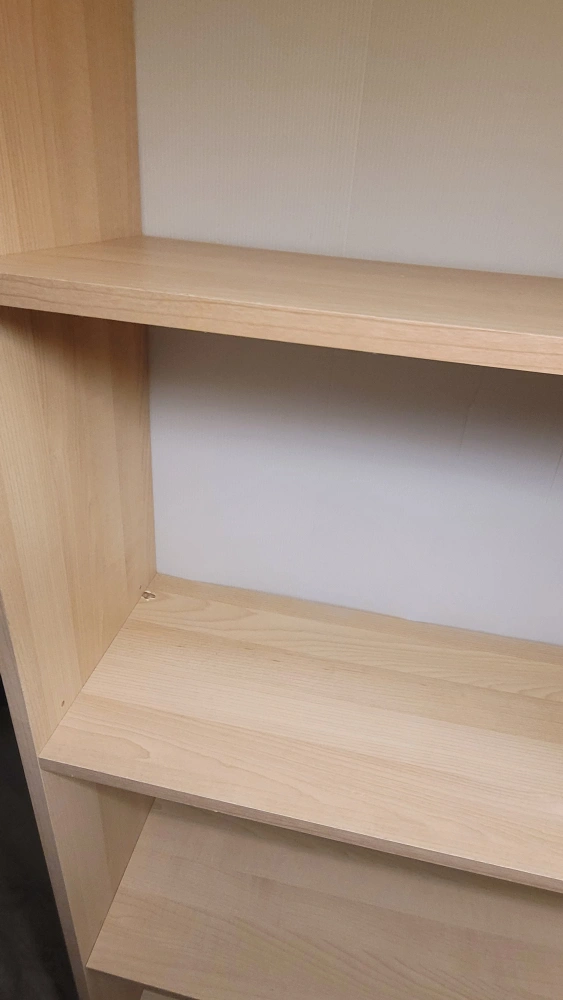 In decent condition, with the exception of a few screw holes (see photos)... just hide them with books! ๐ The backing is a courragated plastic. each shelf is fixed with screws, so not easily removable.