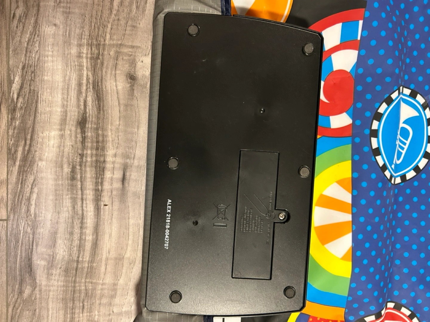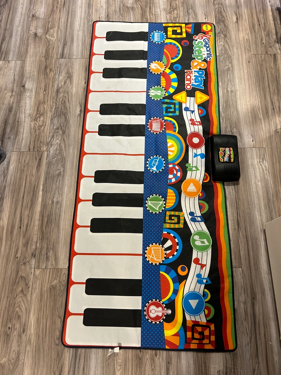 Fun musical play mat. Features large piano keys. Great for toddlers. Includes electronic control unit. Measures approximately 90cm x 45cm.