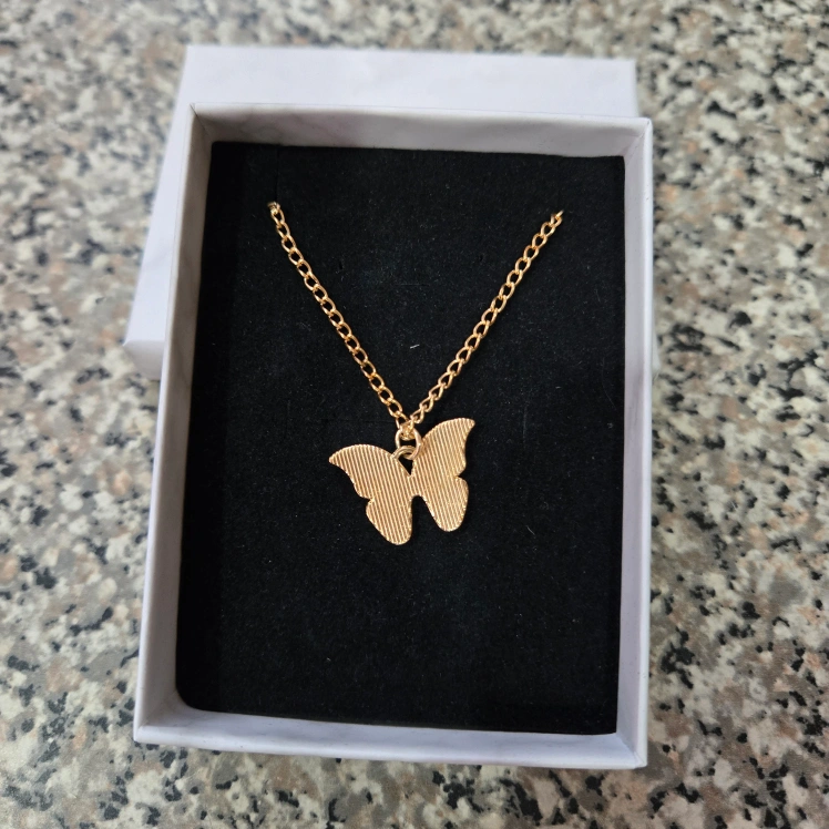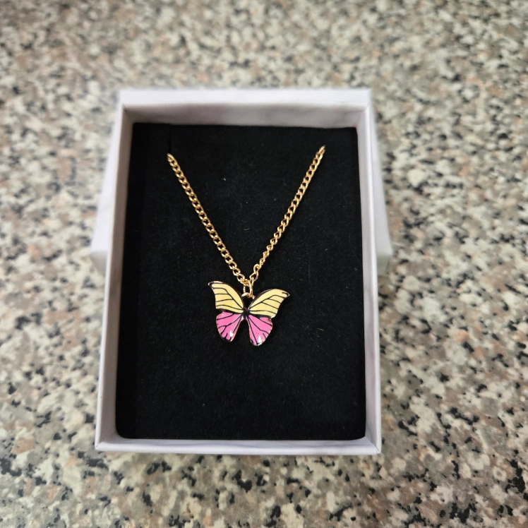 Add a touch of nature to your outfit with this beautiful pink and yellow tone Monarch Butterfly Pendant Necklace. The gold-tone chain complements the natural beauty of the butterfly pendant, making it the perfect accessory for any bohemian or earthy outfit. The lobster closure ensures a secure fit, with approximately 9" length. This necklace is perfect for a birthday gift or for adding a touch of magic to your daily wardrobe. The butterfly pendant represents beauty, change, transformation, and hope. Made in China, this necklace will come in a marble-like gift box.