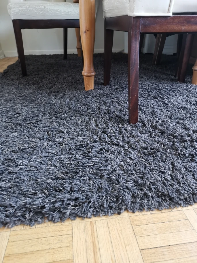 Soft, dark grey shag rug. Good condition. Perfect for adding warmth and texture to your space. Measurements not provided.160x225 cm