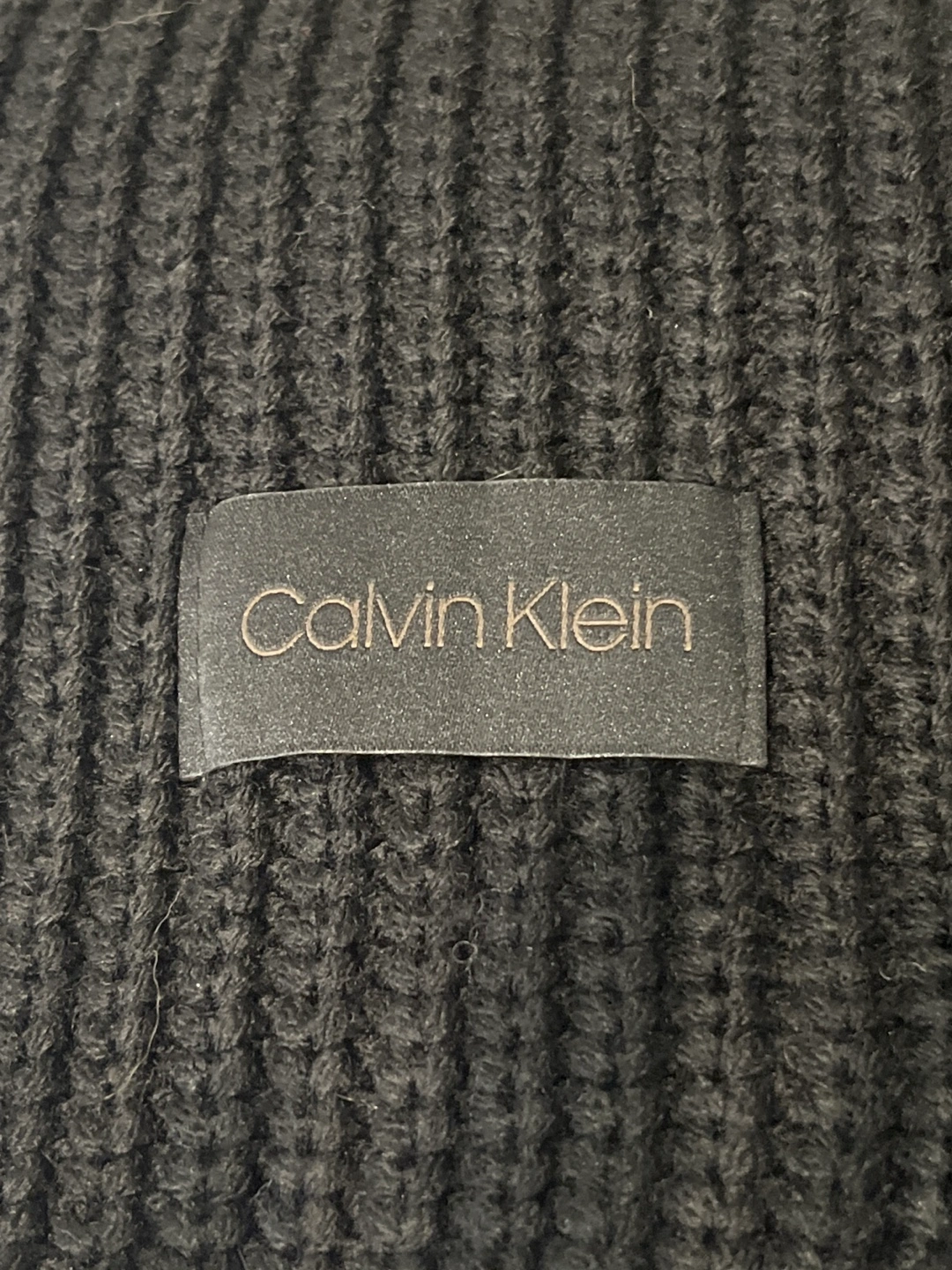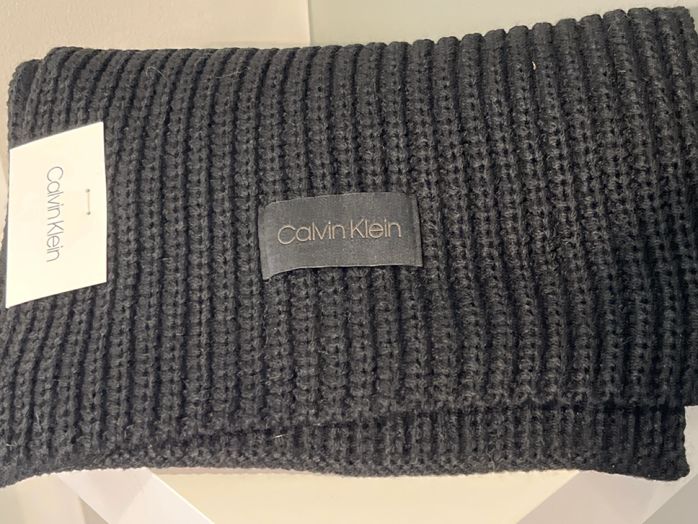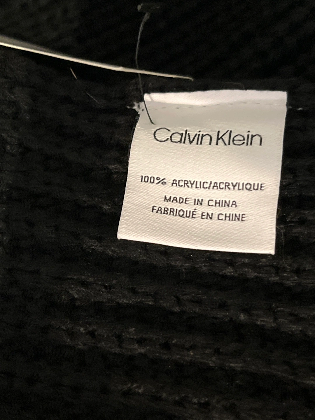 Calvin Klein 100% acrylic black knitted scarf. Ribbed texture.