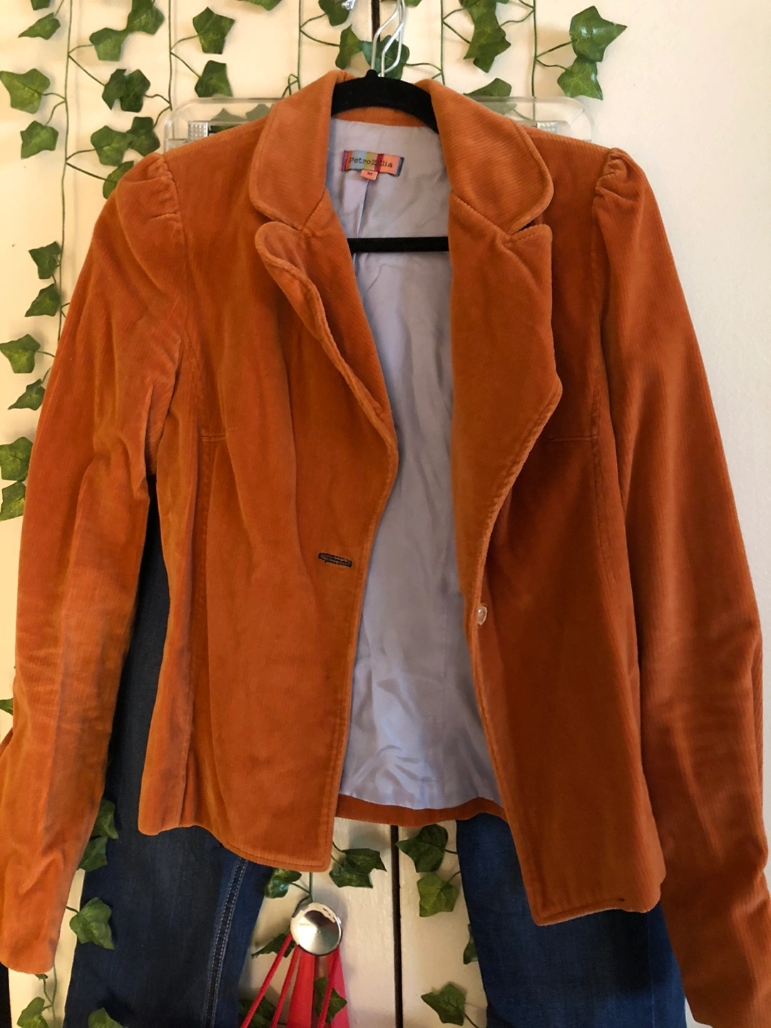 1000+Lightweight burnt orange corduroy velvet blazer. Button closure. Size M.