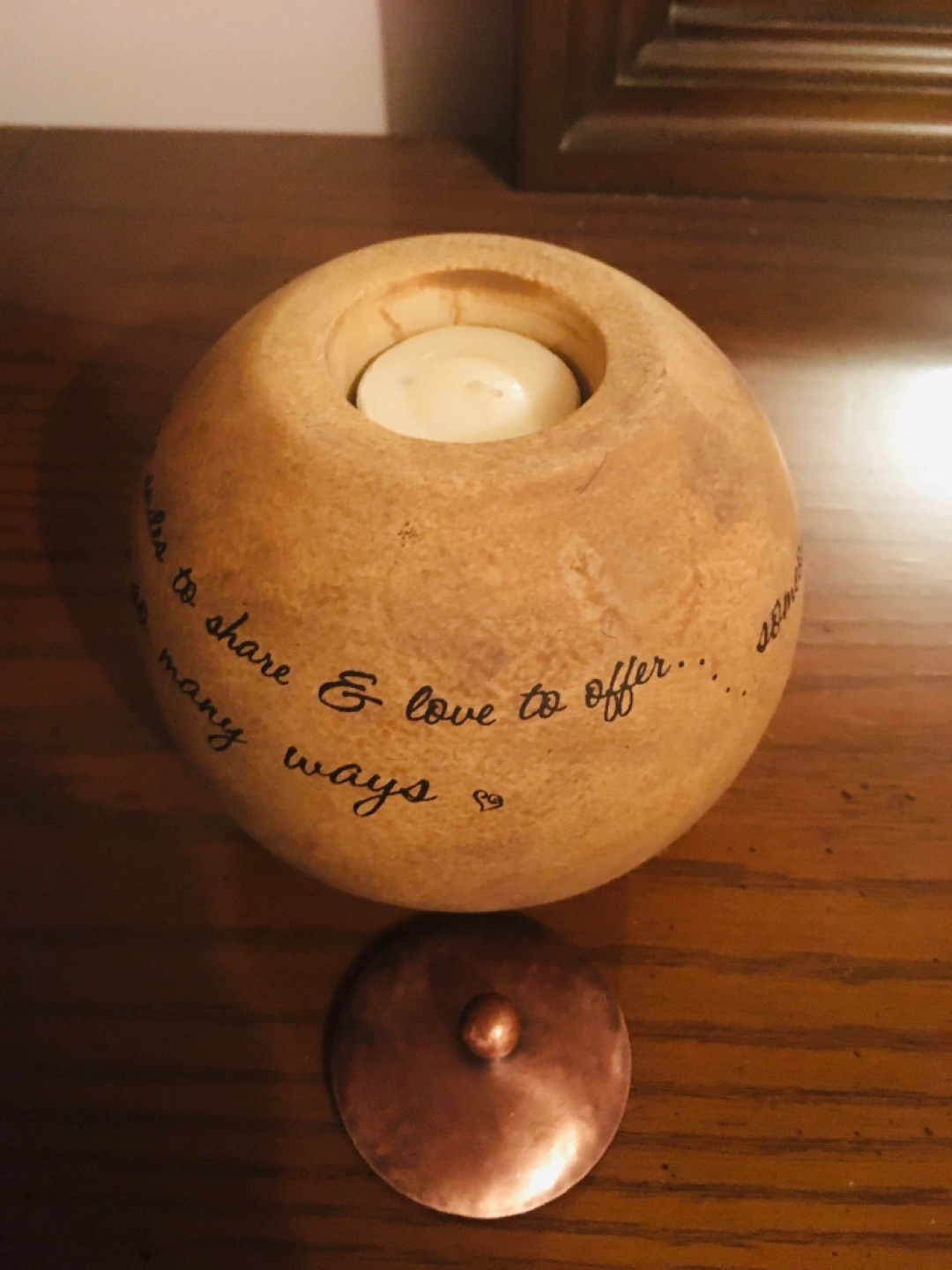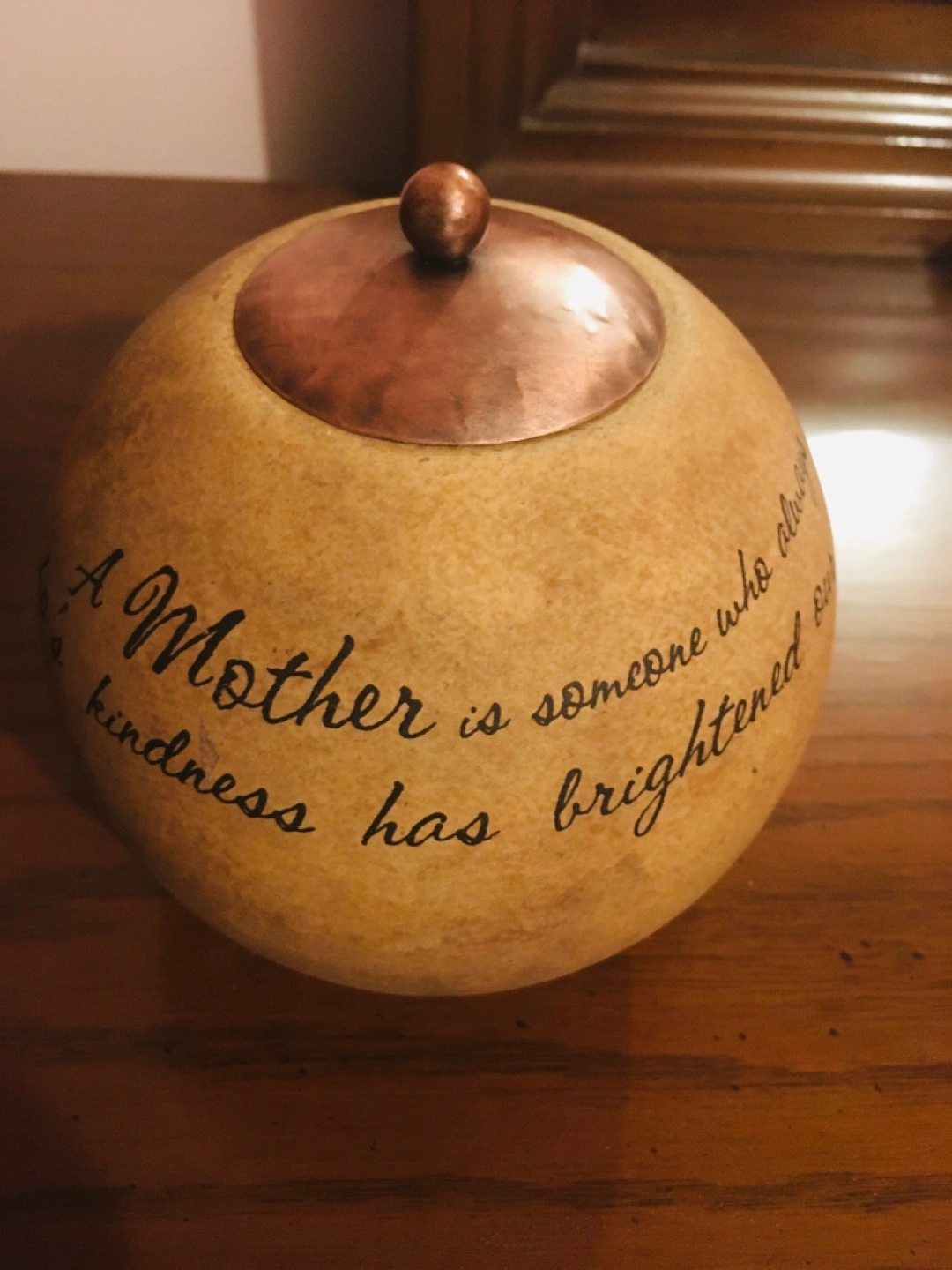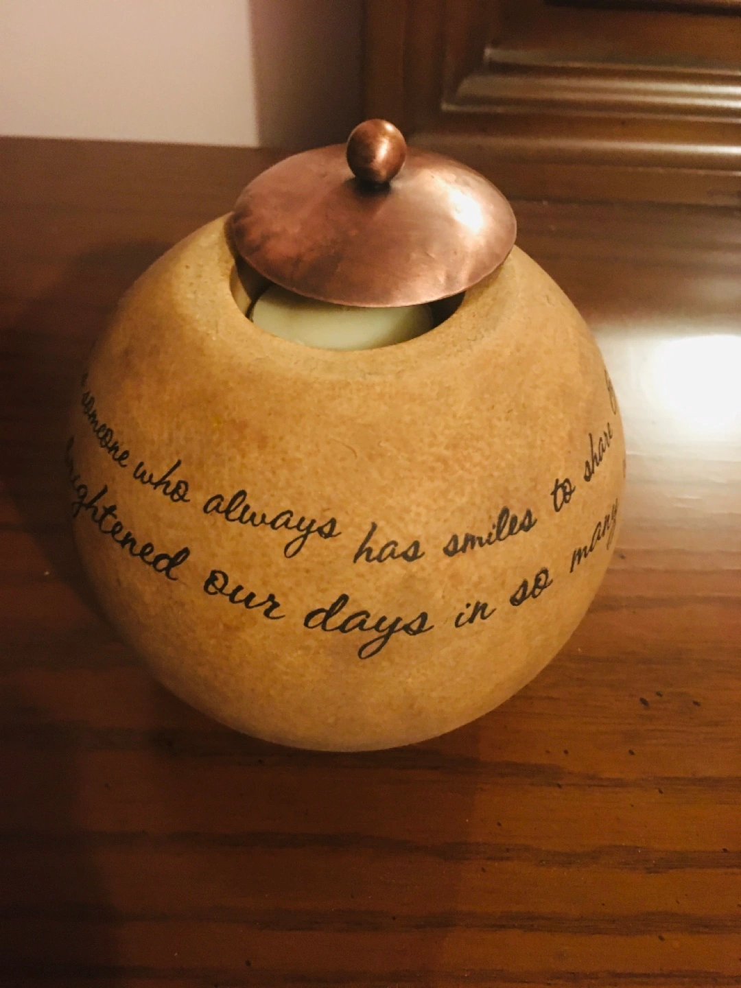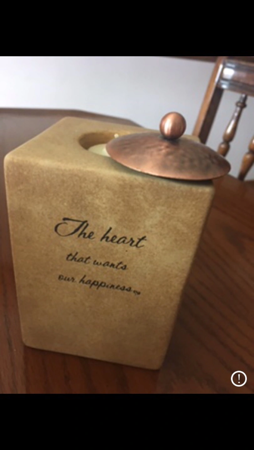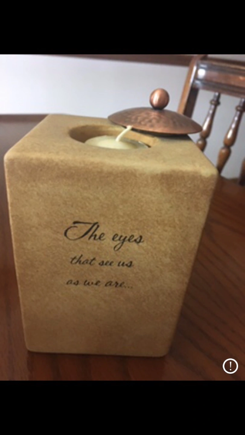 Set of two beige square and round candle holders. Each features a different quote and a copper lid. Perfect for gifting or home décor. A gift For mom $10 each