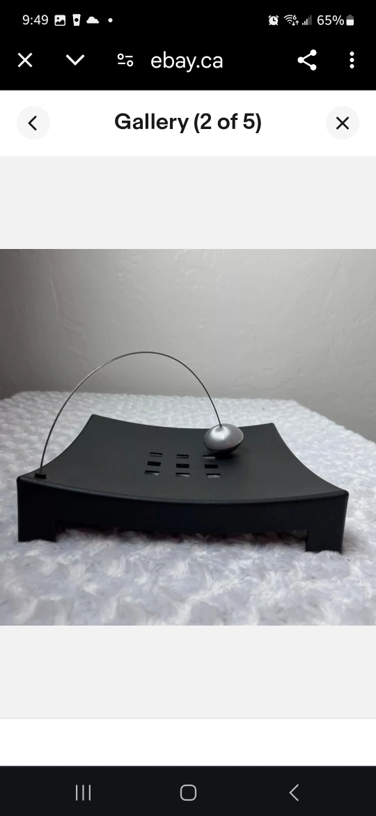 Stylish napkin holder. Black with a curved metal arm and weighted ball. Adds a touch of modern elegance to your table setting. Measures approximately 10cm x 10cm.