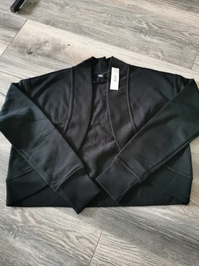 Women's cropped black cardigan sweater. Soft material, long sleeves, open front. New with tags.