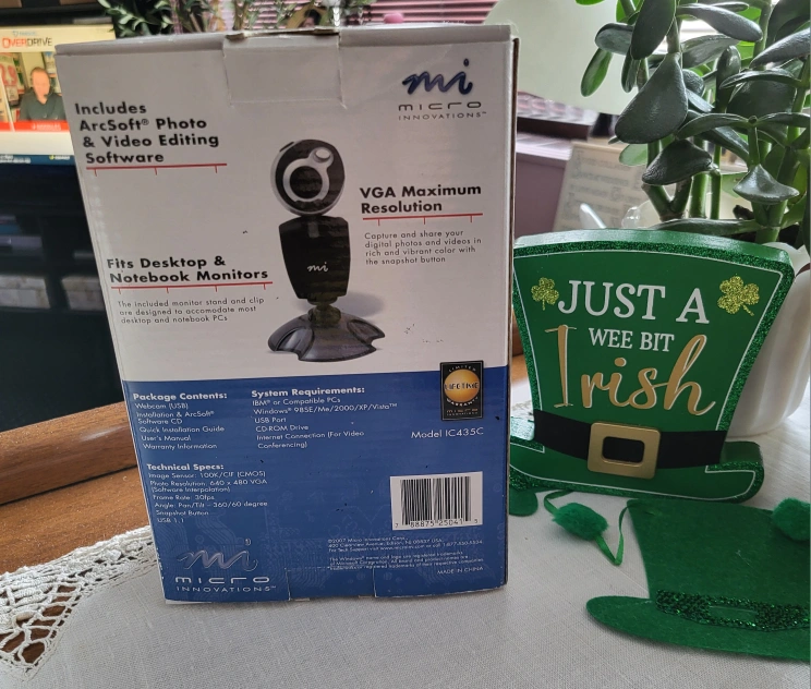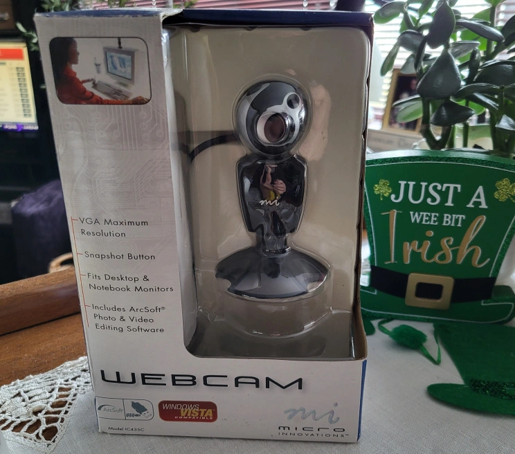 70Vintage webcam in original packaging. VGA maximum resolution. Includes ArcSoft photo and video editing software. Fits desktop and notebook monitors. Snapshot button. All Sales Final. No returns. Cash only please. Thanks.
