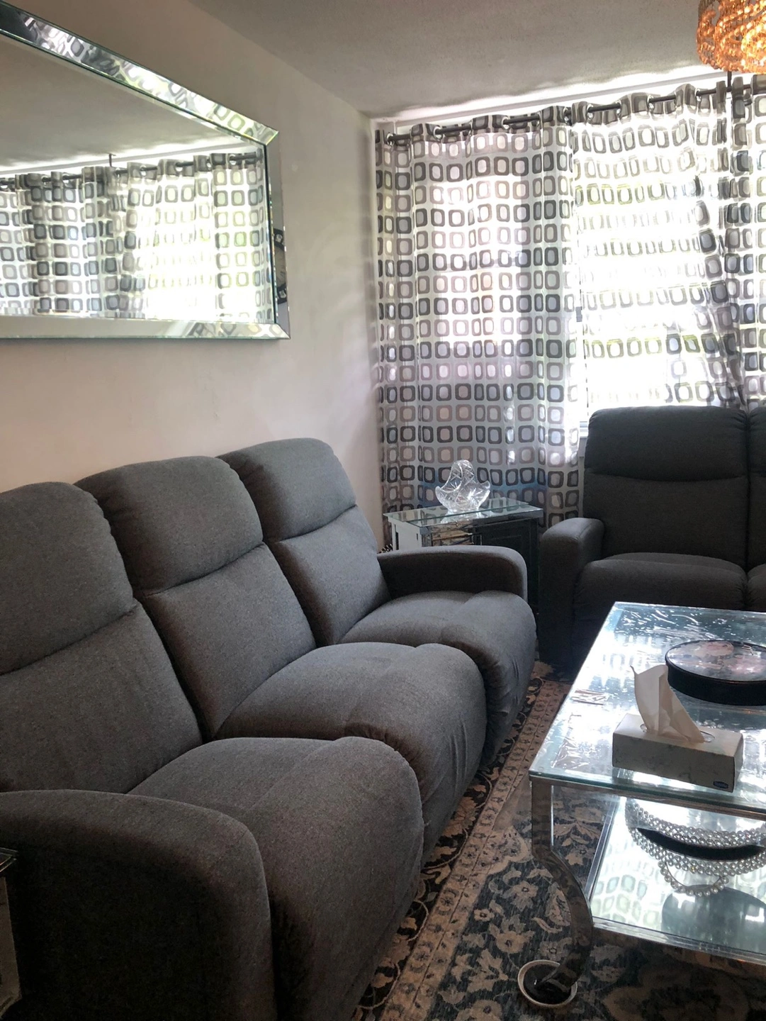 2 beautiful like new Grey Reclining LAZY BOYSofas