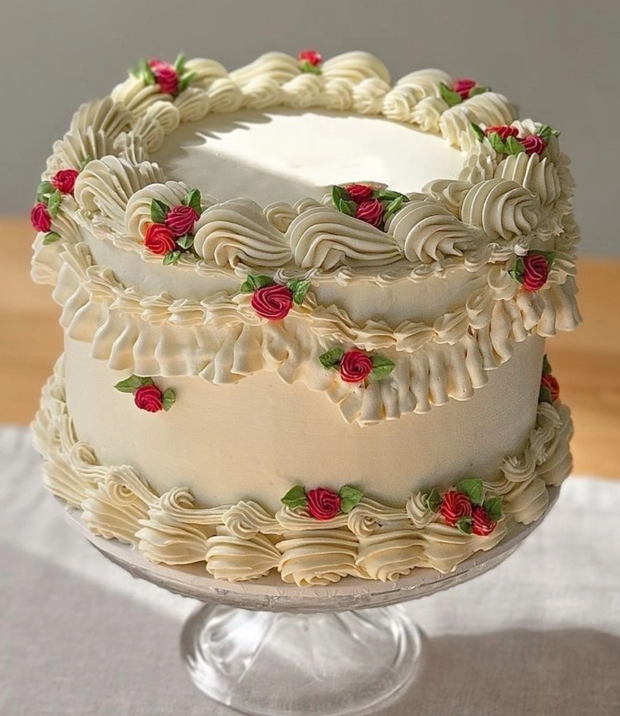 Buy & SellWhite vintage style cake with rosesWhite vintage style cake with roses$65Two cake layers with white icing, detailed piping, red roses and leaves. MADE FRESH TO ORDERWHERE TO MEETCheck LocationView MapSELLERBakedbyCLeitrim292 reviews0 chats·0 favorites·31 views