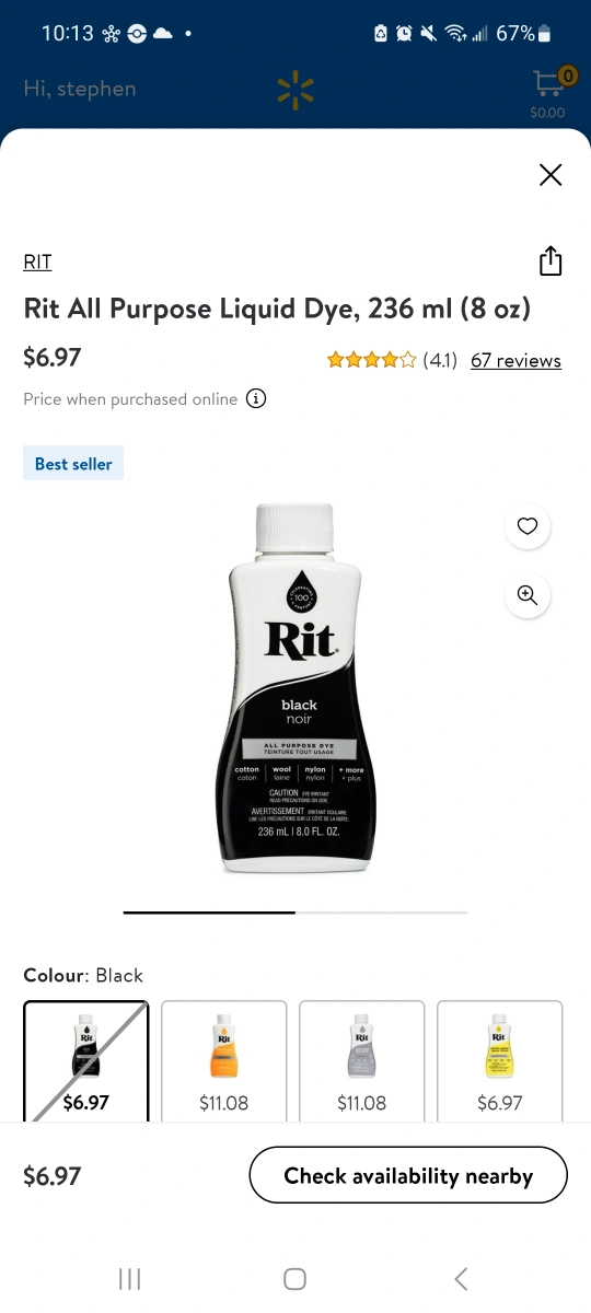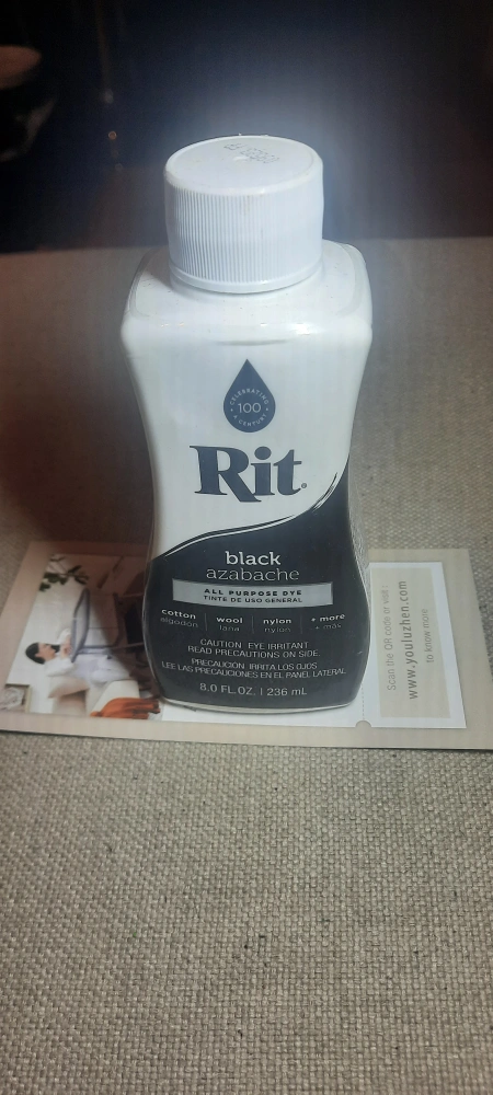 Rit All Purpose Liquid Dye. Black colour. 236ml (8oz) bottle. For cotton, wool, nylon, and more. Wife used it for our wedding art.. half full.. would rather give it away then throwing it out. #freecycle