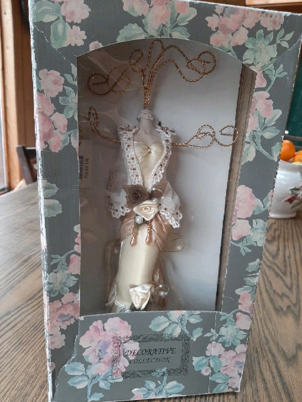 Fancy lady doll dressed in shiny cream-colored dress adorned with ribbons, beads, and flowers. Hang necklaces, bracelets, and rings on the wire holders to keep track of your favorite pieces and keep them untangled. No Box. For Sale By: Owner
