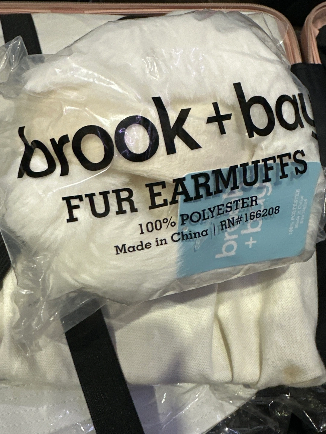 Brand new Brook + Bay fur earmuffs. Off-white colour. 100% polyester. Made in China.