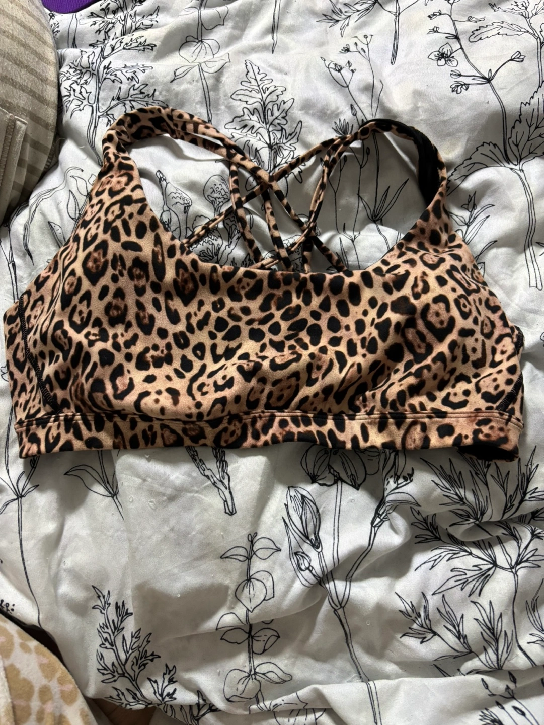 Like NEW (bought wrong size) Victoria's Secret sports bra. Limited edition Leopard print design. Beautiful Cross-back straps. Mesh detailing. Excellent support and comfort