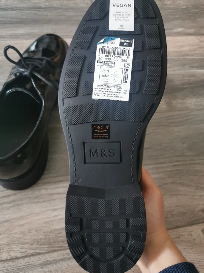 M&S Black Patent Leather Platform Oxfords - Size 39
