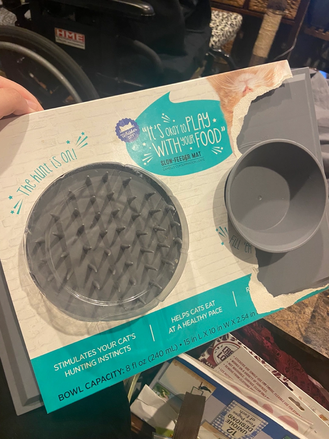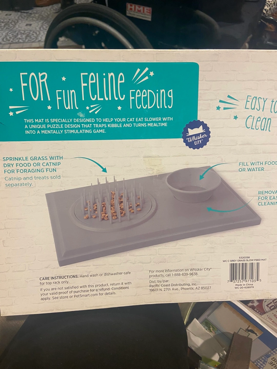 New slow feeder mat and bowl. Stimulates hunting instincts. Bowl capacity: 8 fl oz (240 mL). Easy to clean. Dishwasher safe.