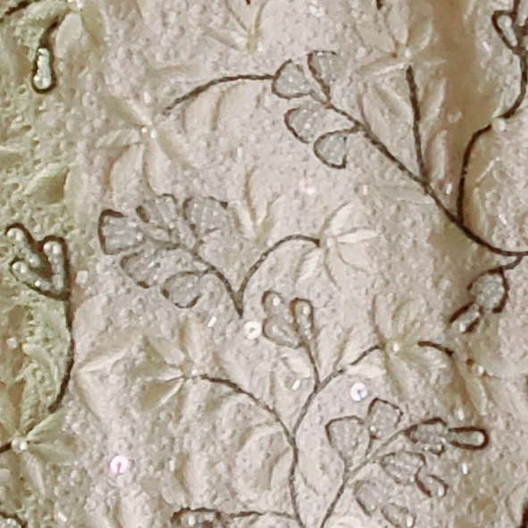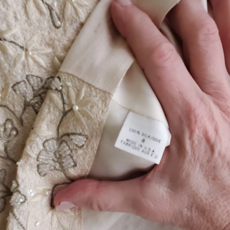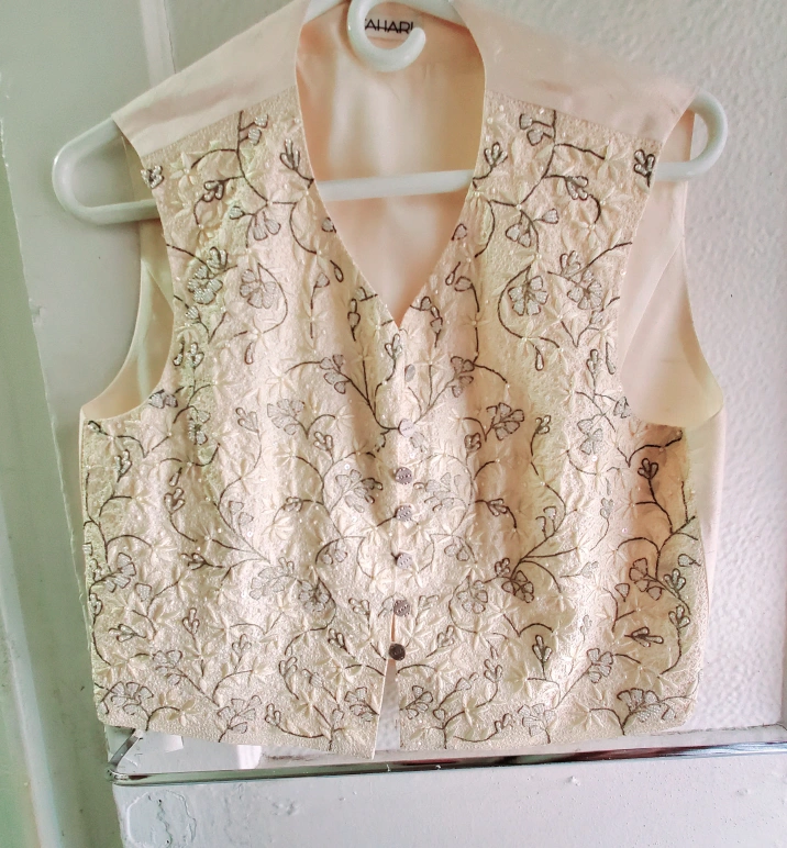 243Beautiful, elegant cream beaded vest with subtle sequins and floral design. 100% silk. Perfect for a sophisticated look. Like new - worn only once.
